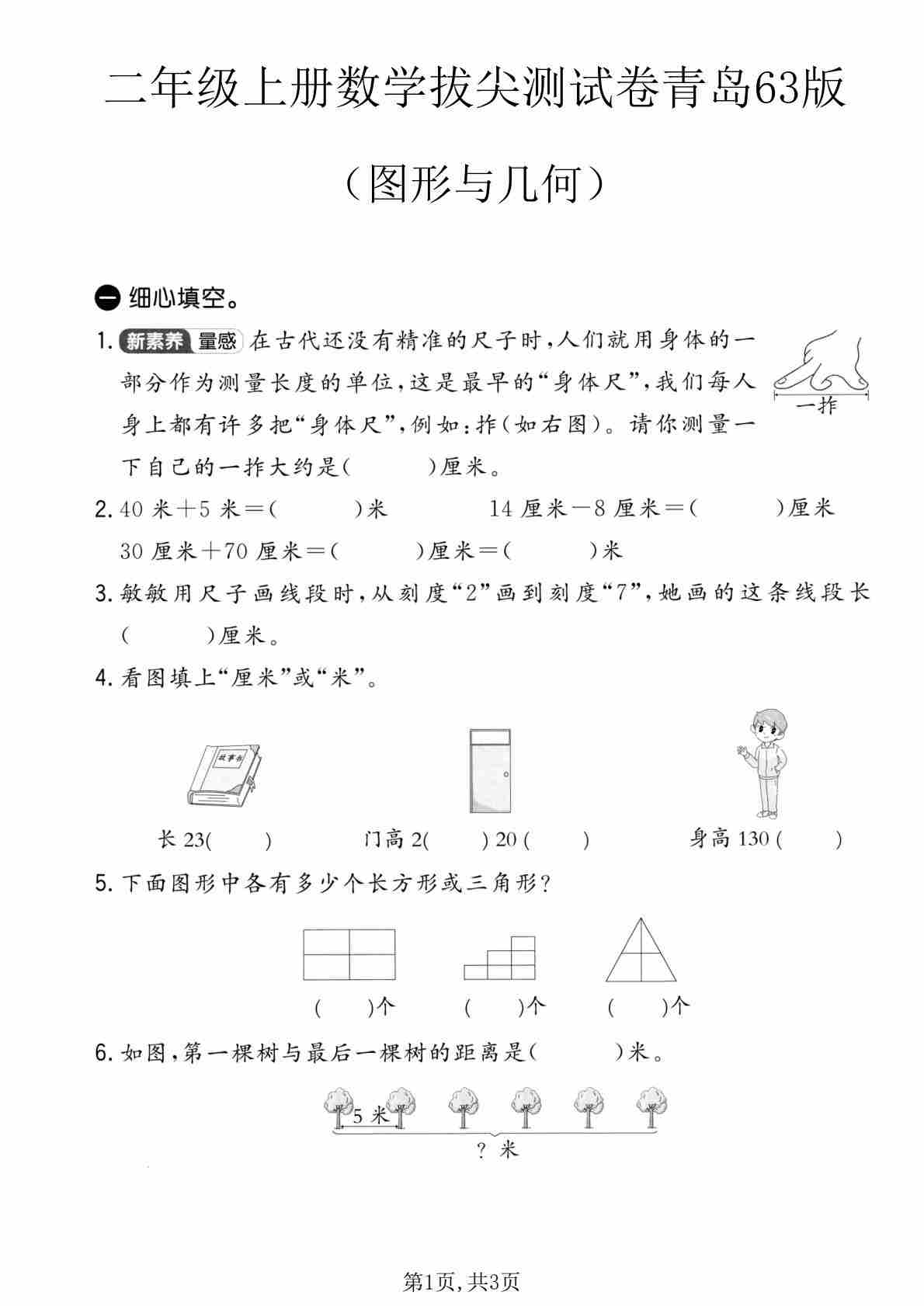二年级(上)数学 图形与几何专项测试卷《青岛63版》