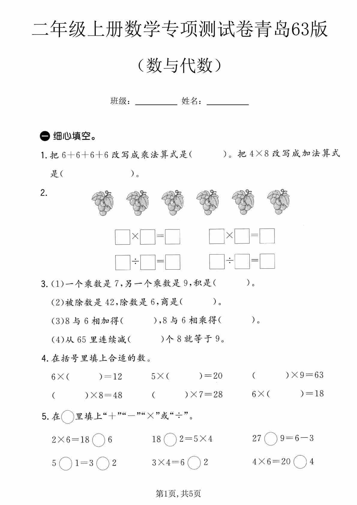 二年级(上)数学 数与代数专项测试卷《青岛63版》