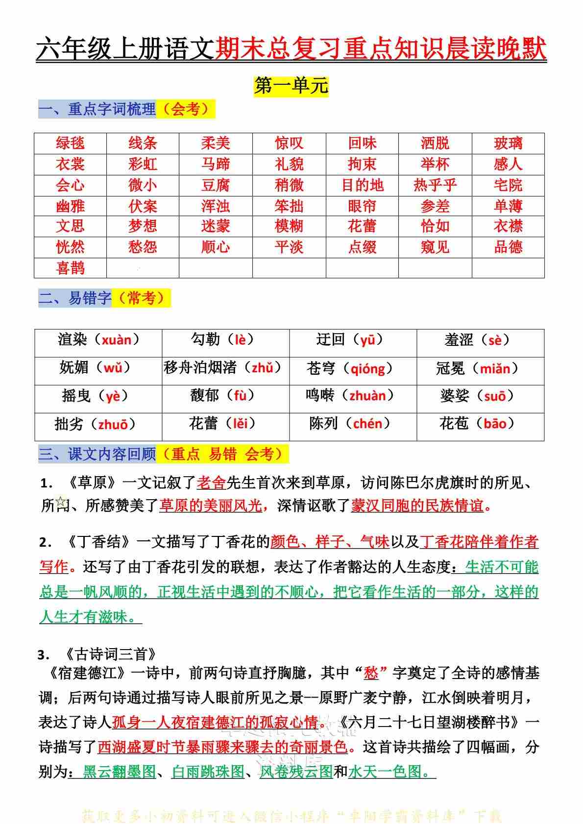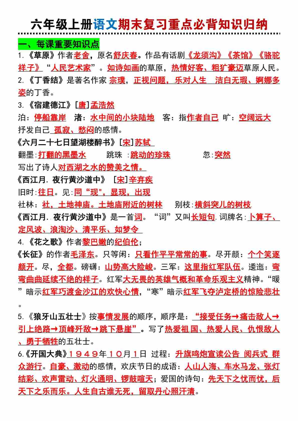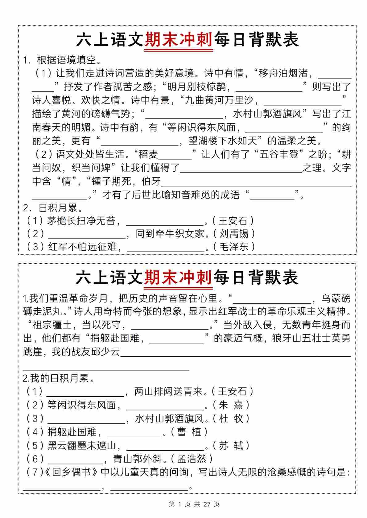 六上册语文《语文期末必考按课文内容填空专题》11页