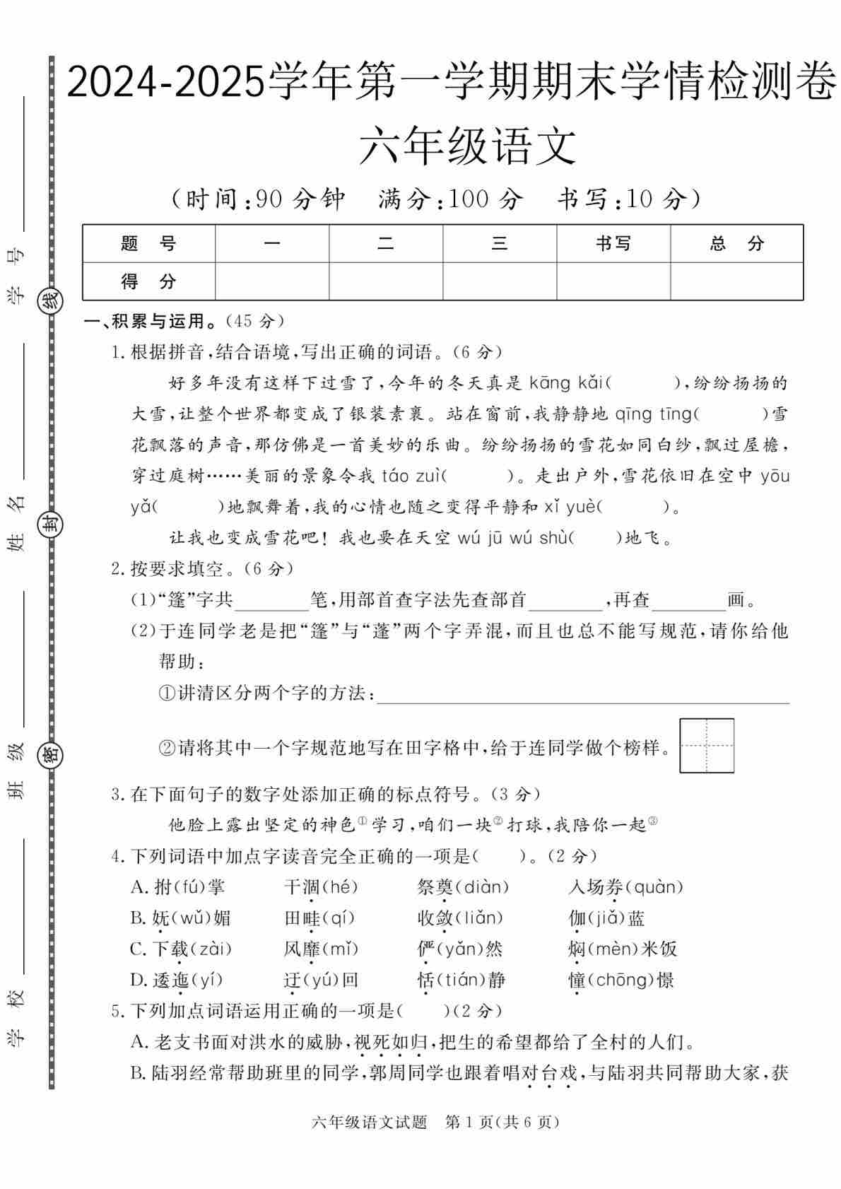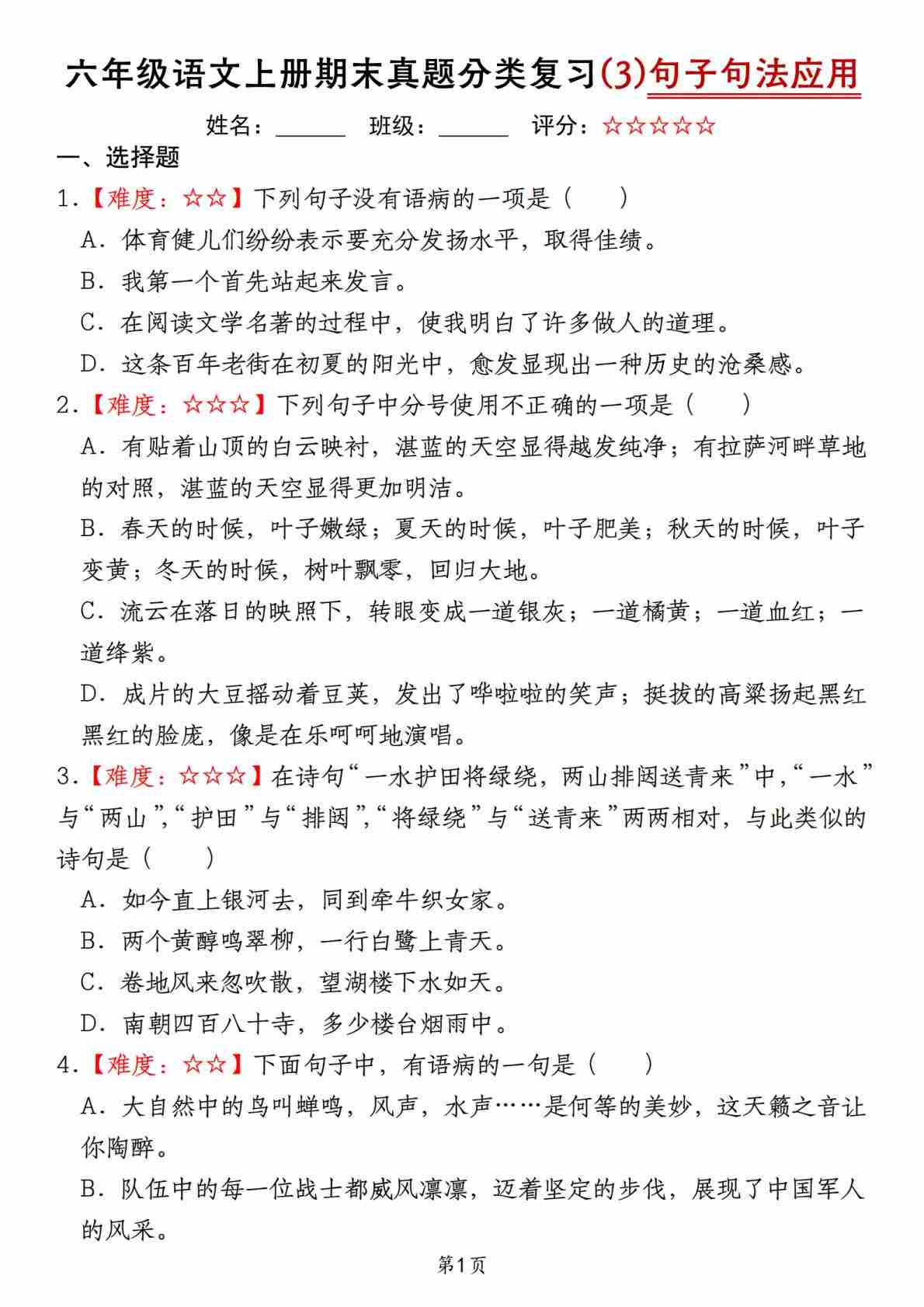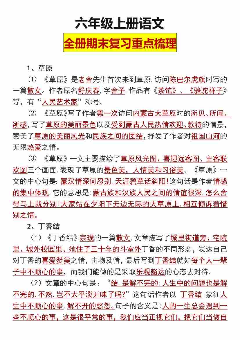 六上册语文《语文期末必考按课文内容填空专题》11页