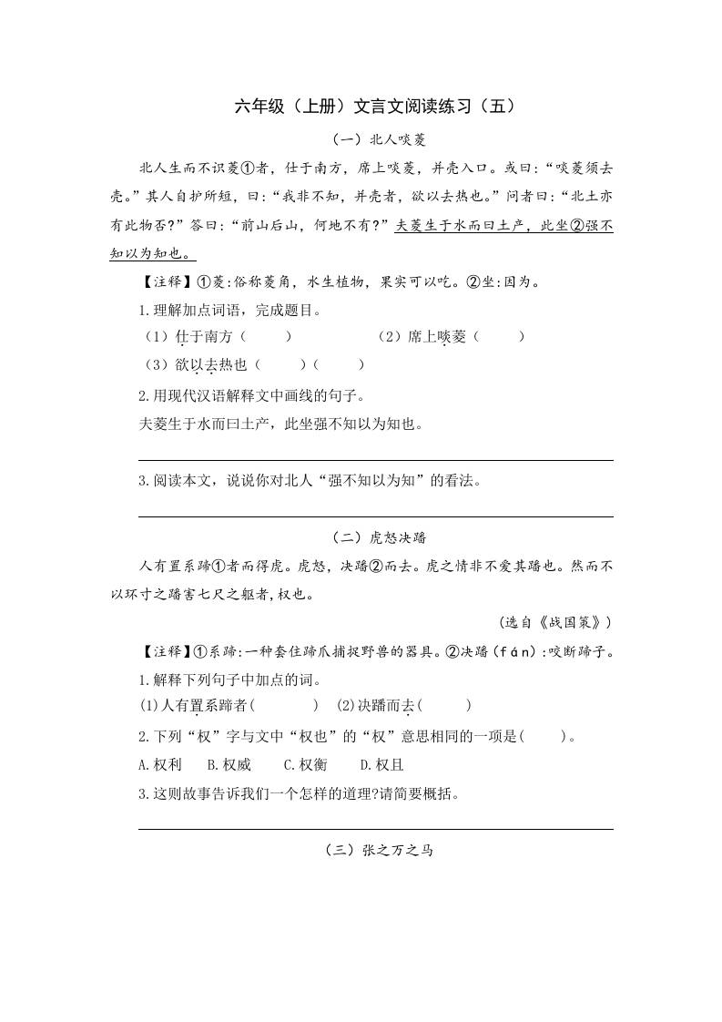 六上语文【文言文阅读练习】