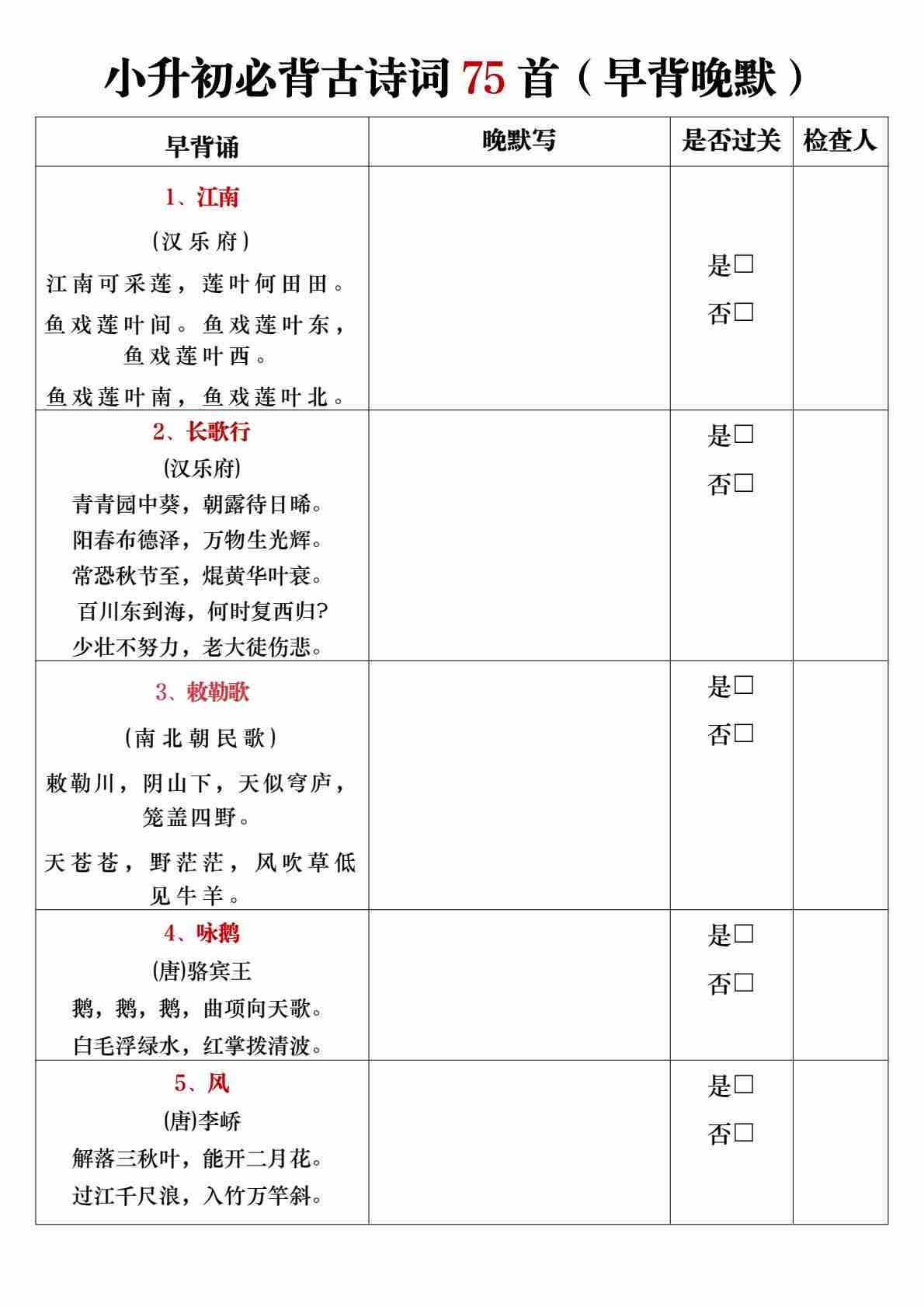 小升初语文必背古诗词75首(早背晚默)