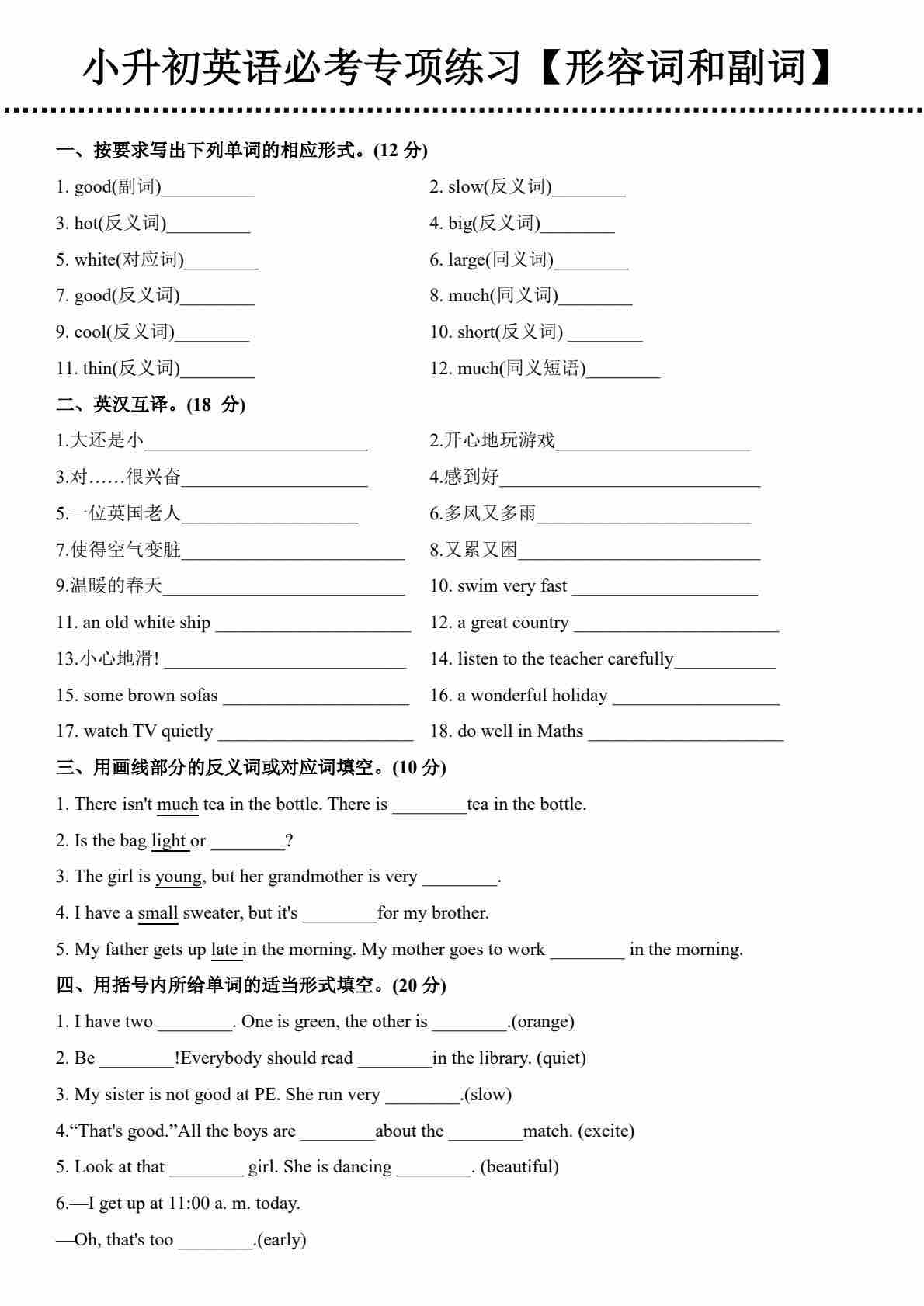 小升初英语【必考专项练习(形容词和副词)】