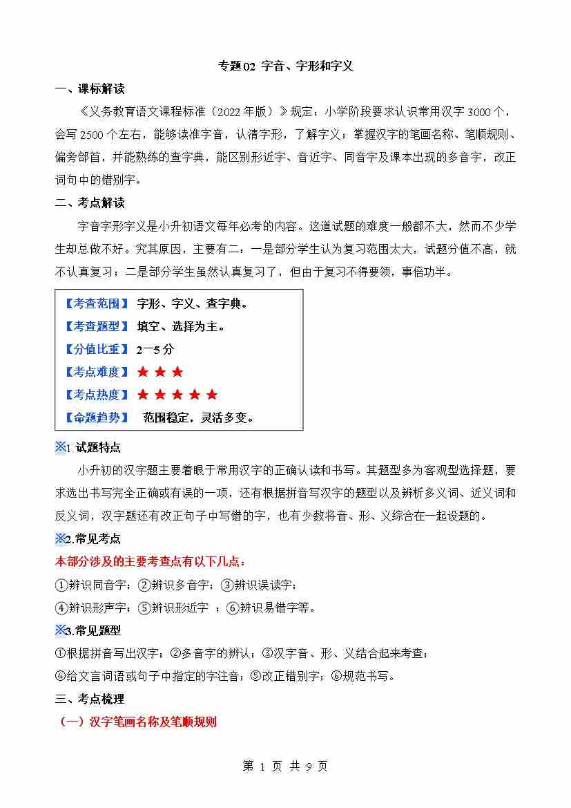 专题02 字音、字形和字义(讲义)