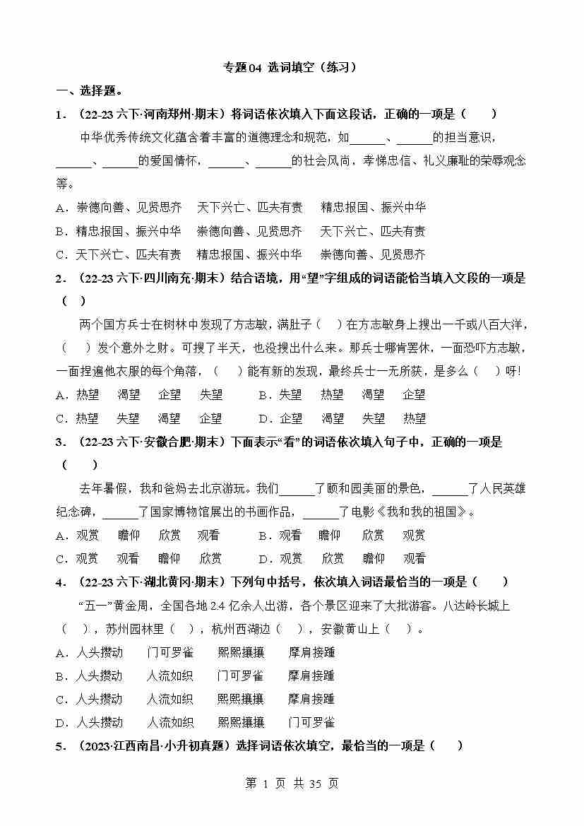 专题04 选词填空(练习)