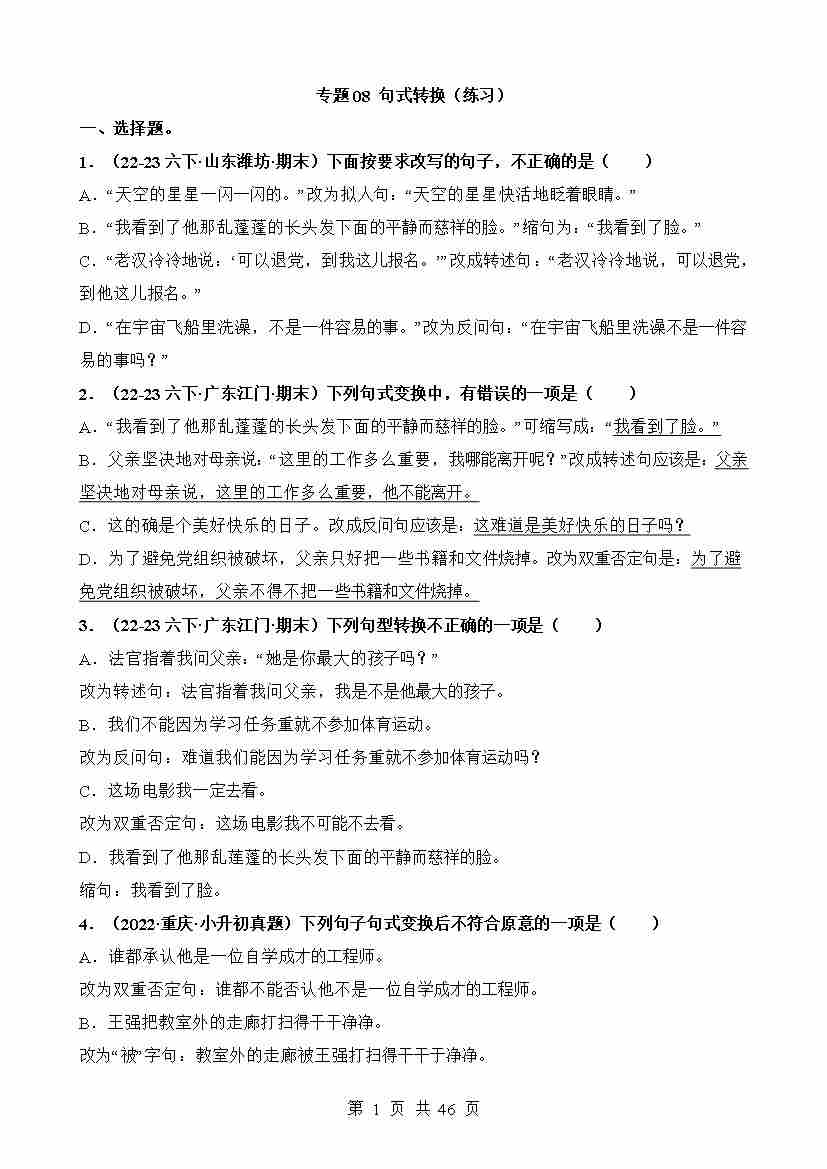 专题08 句式转换(练习)