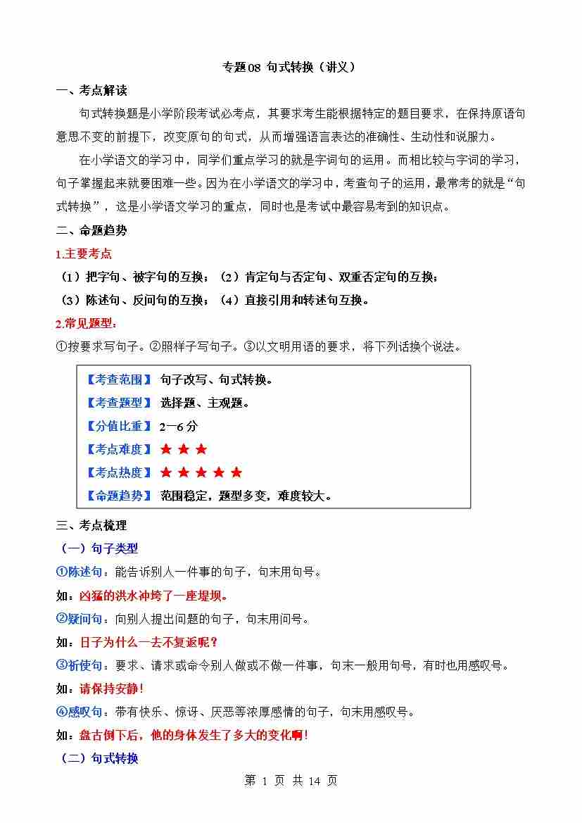 专题08 句式转换(讲义)