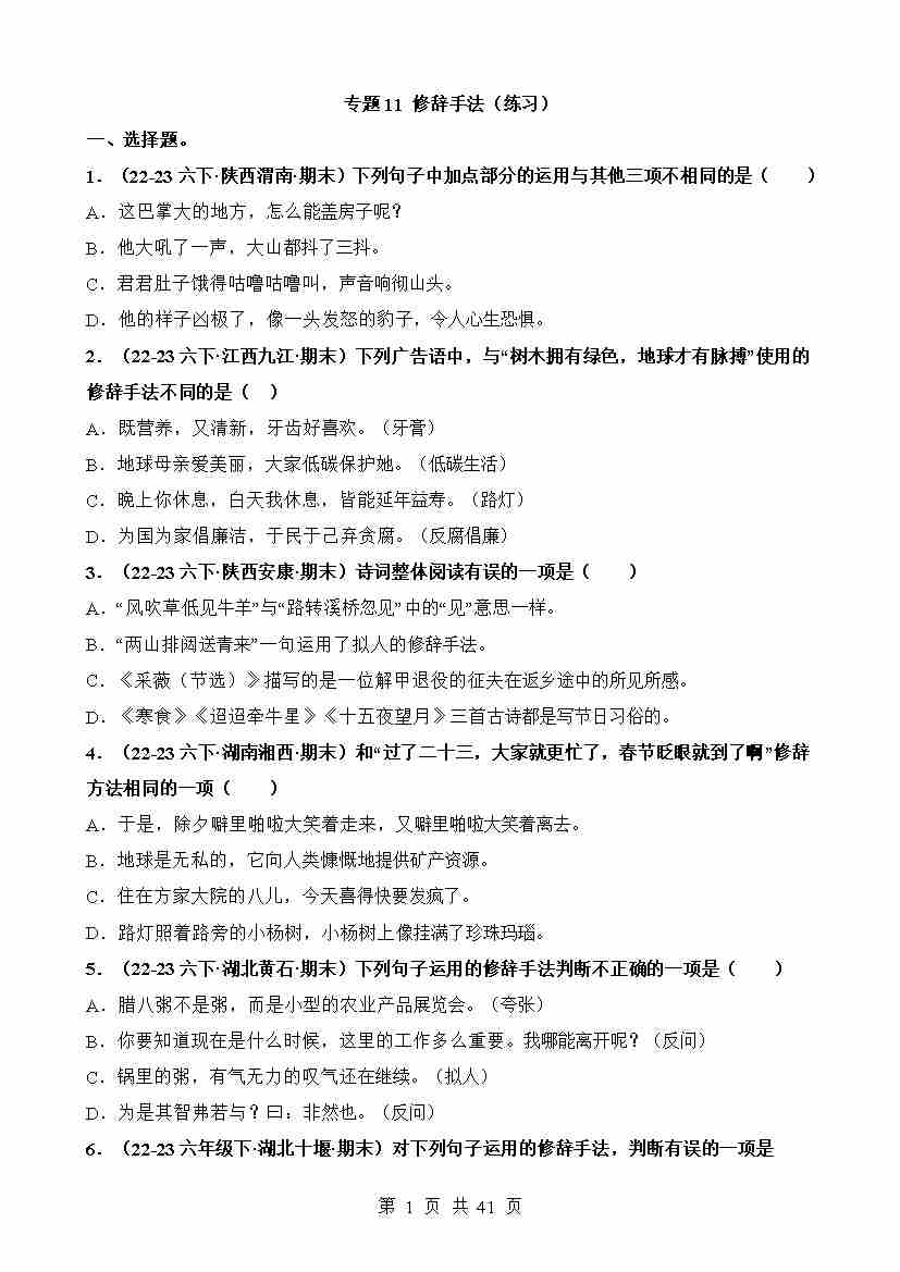 专题11 修辞手法(练习)