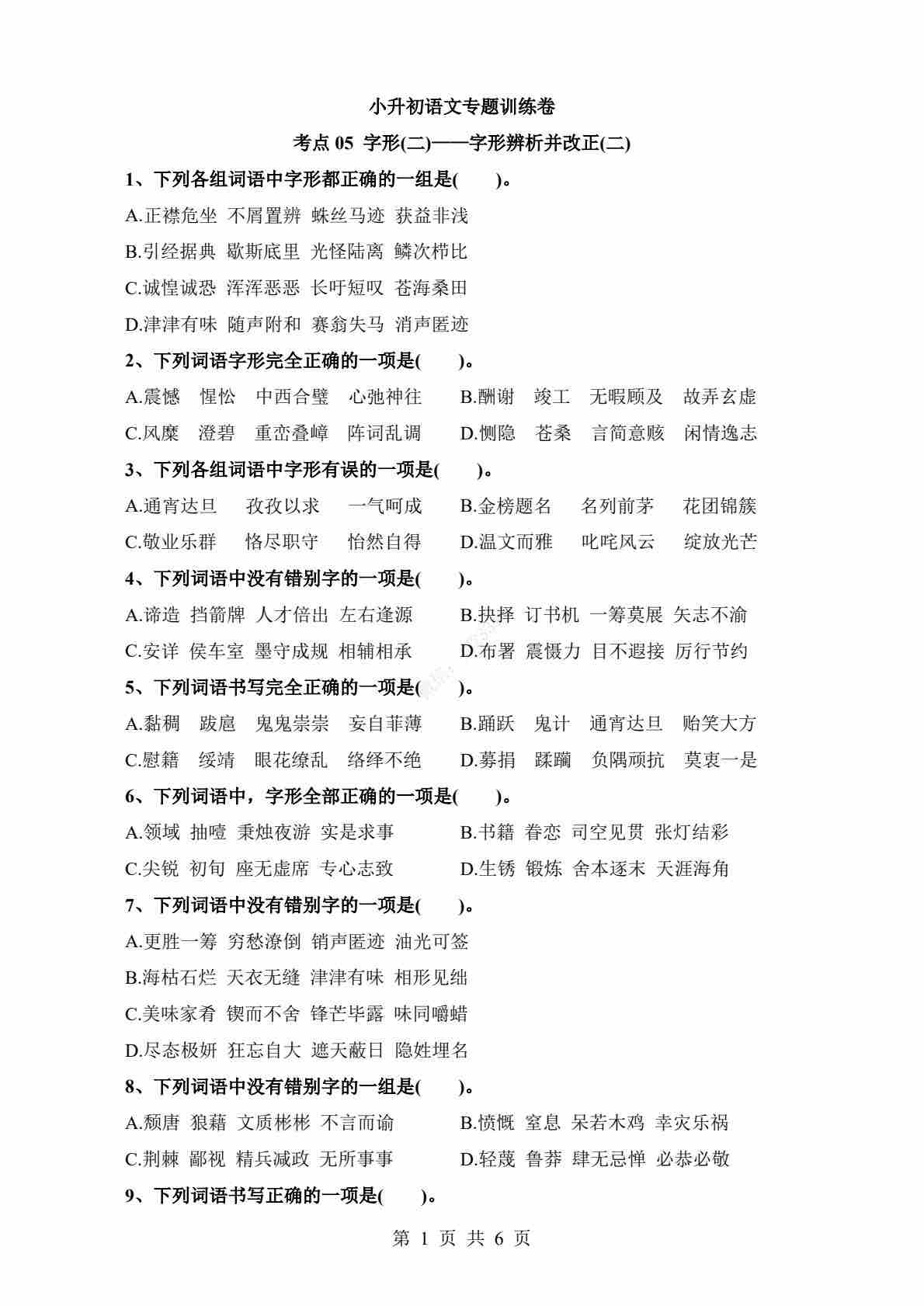 考点05 字形辨析并改正(二)