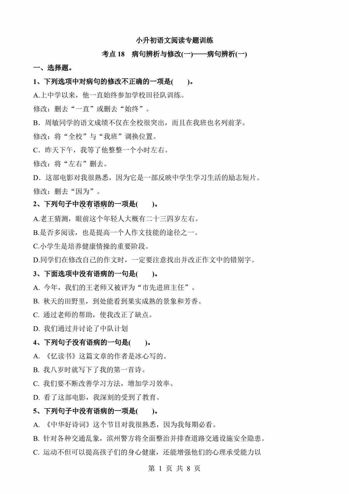 考点18 病句辨析(一)