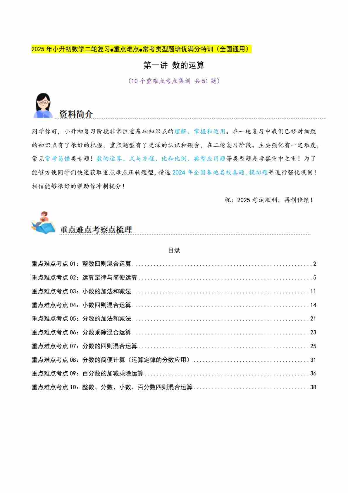 第一讲 数的运算(10个重难点考点集训 共51题)小升初复习讲义(教师版)无学生版