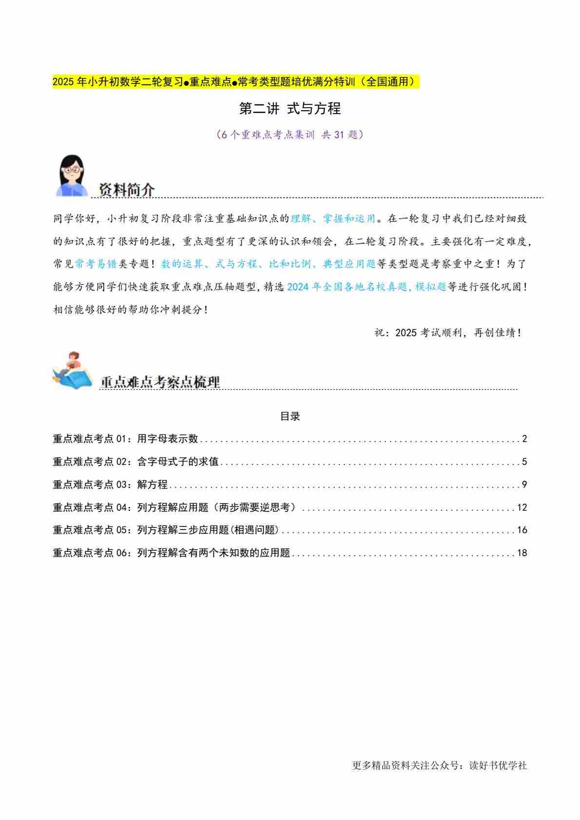 第二讲 式与方程(6个重难点考点集训 共31题)小升初复习讲义(学生版)