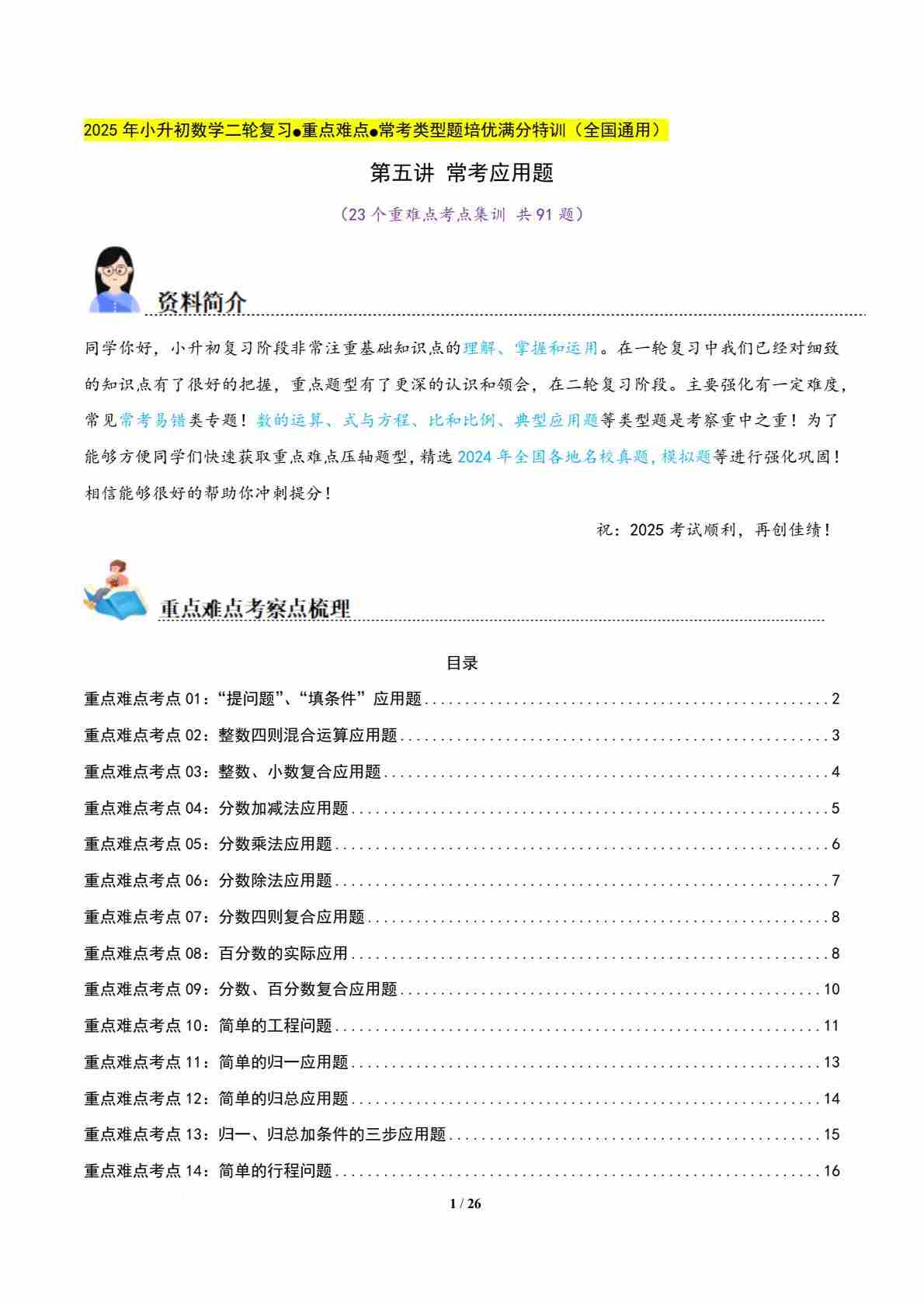 第五讲 常考应用题(23个重难点考点集训 共91题)小升初复习讲义(学生版)