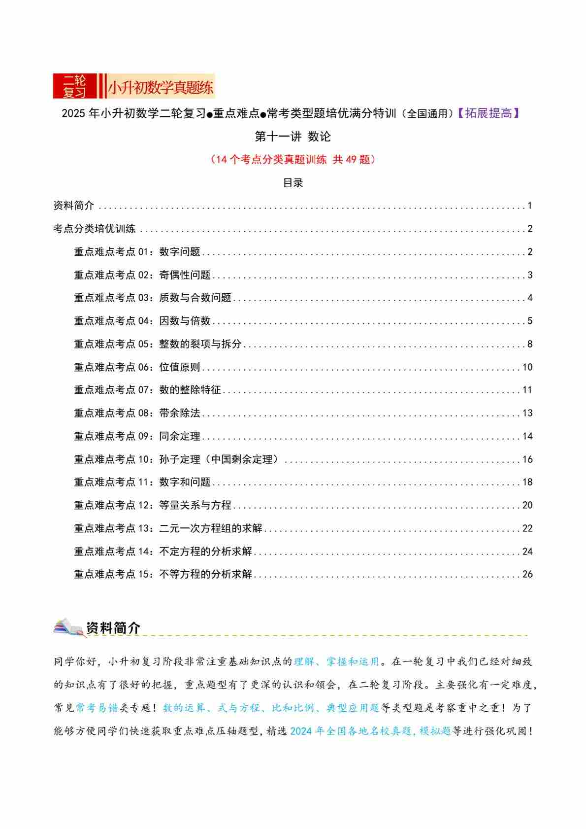 第十一讲 数论(拓展提高初等奥数篇 15个考点分类真题训练 共49题)小升初复习讲义(学生版)