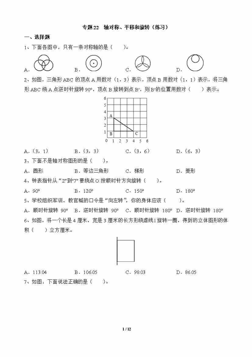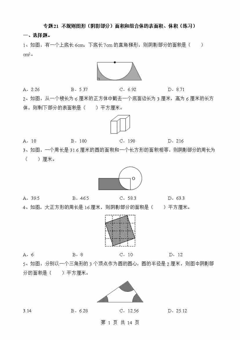 专题21 不规则图形(阴影部分)面积和组合体的表面积、体积(练习)