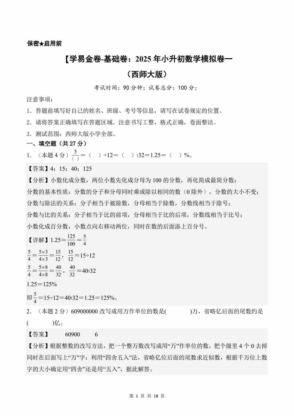 【西师大版】数学(基础卷01)(考试A4版)