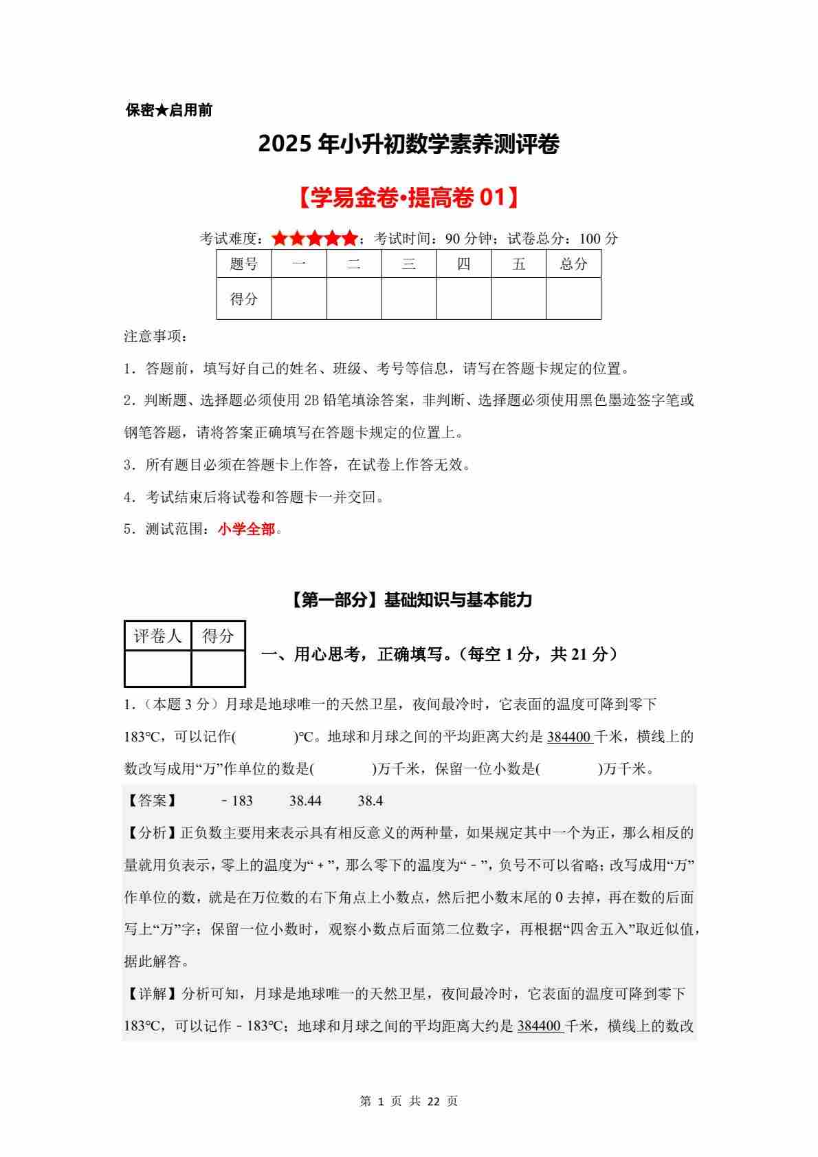 数学(提高卷01)2025年小升初【参考解析】(沪教版)
