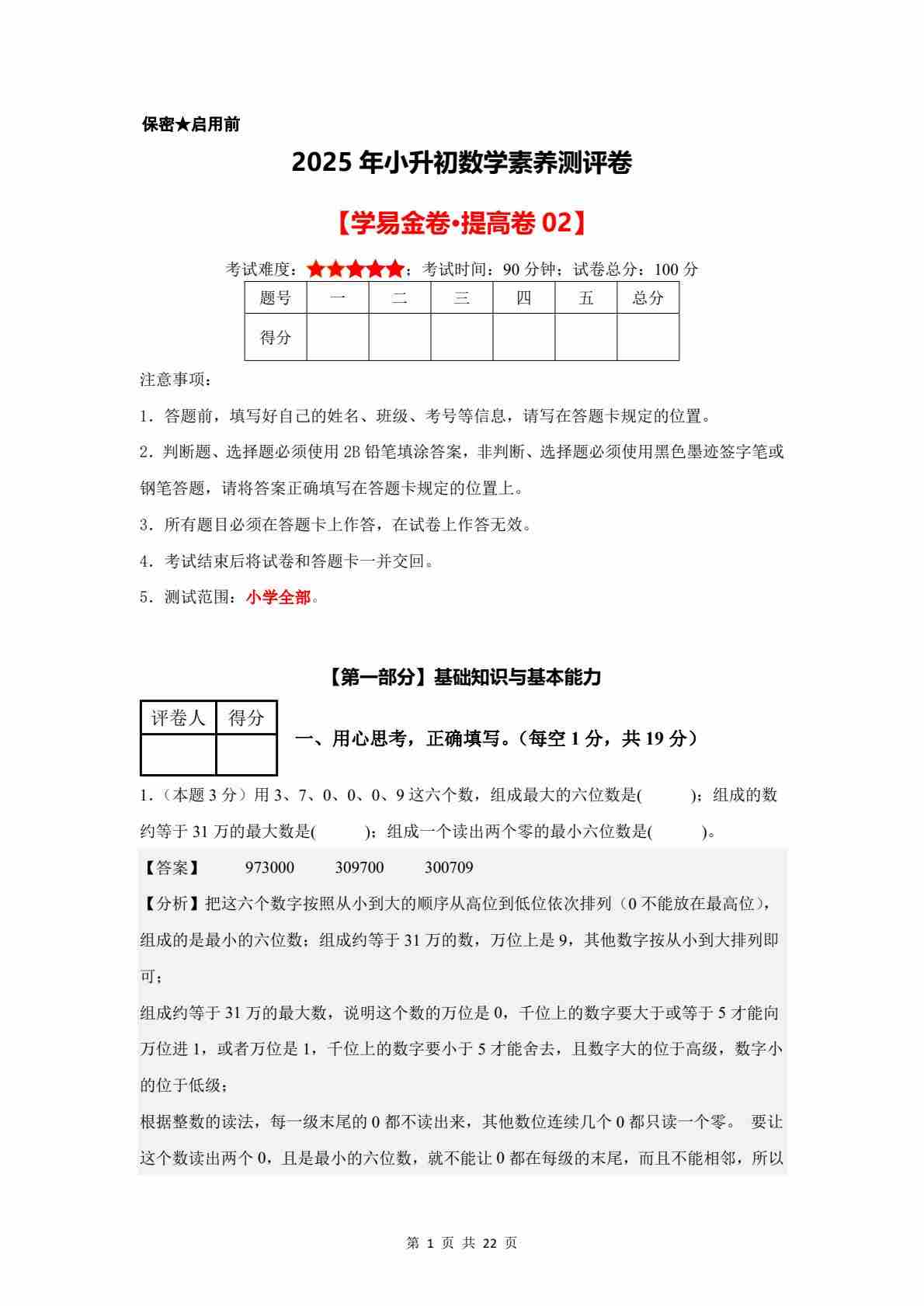 数学(基础卷01)2025年小升初【参考解析】(沪教版)