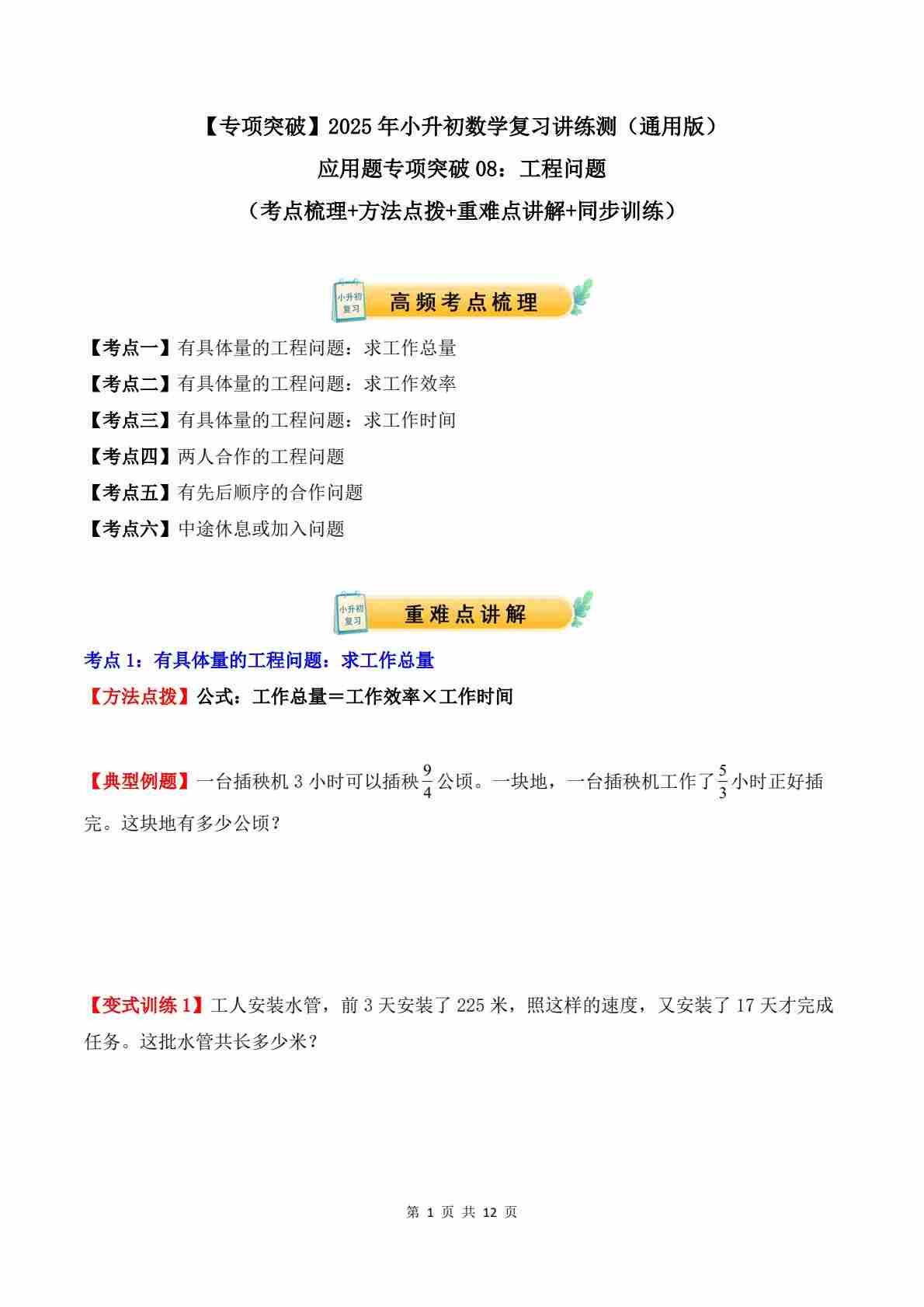 应用题专项突破08:工程问题(学生版)-2025年小升初数学应用题专项突破(通用版)