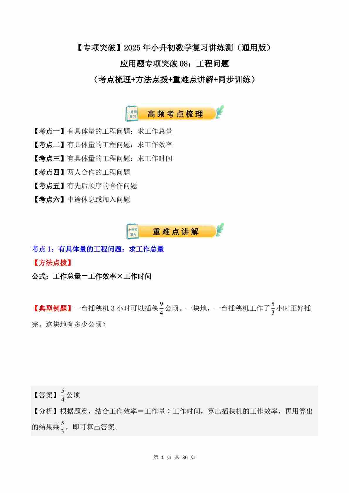 应用题专项突破08:工程问题(解析版)-2025年小升初数学应用题专项突破(通用版)