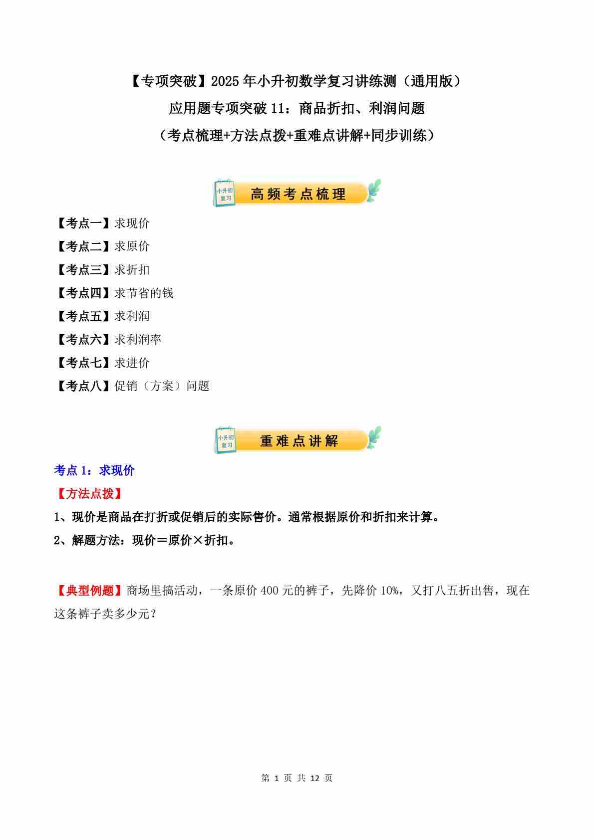 应用题专项突破11:商品折扣、利润问题(学生版)-2025年小升初数学应用题专项突破(通用版)
