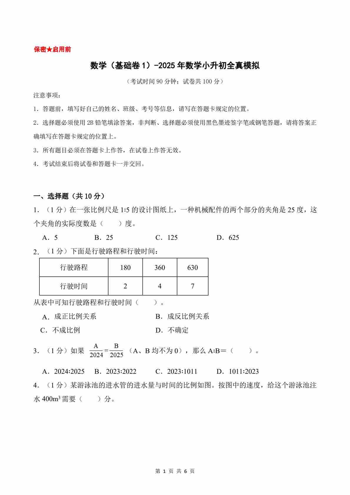 【北京版】数学(基础卷01)(考试版A4)