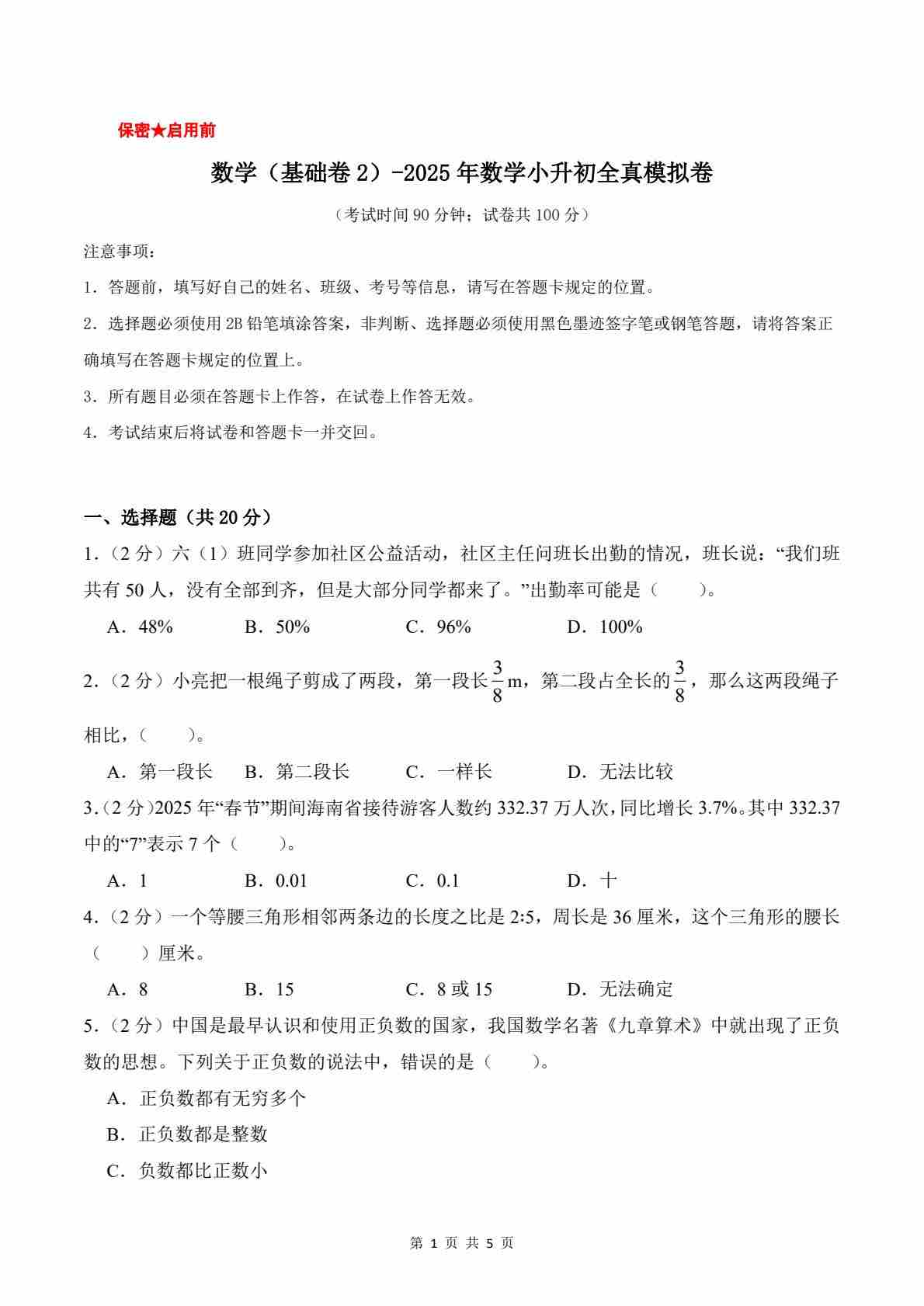 【北京版】数学(基础卷02)(考试卷A4版)