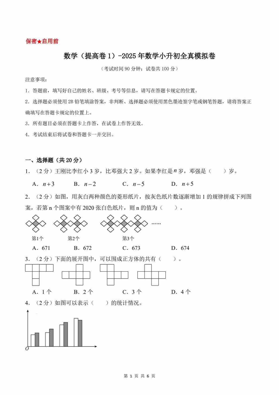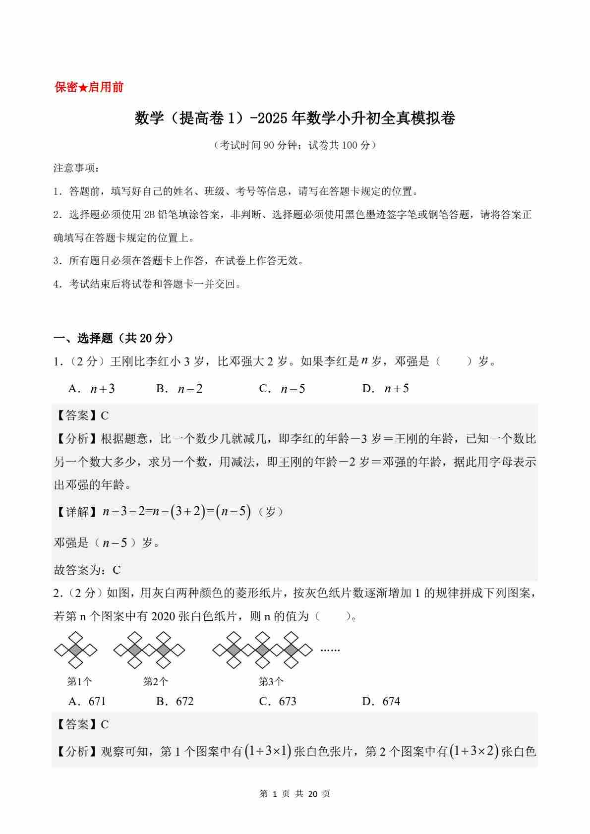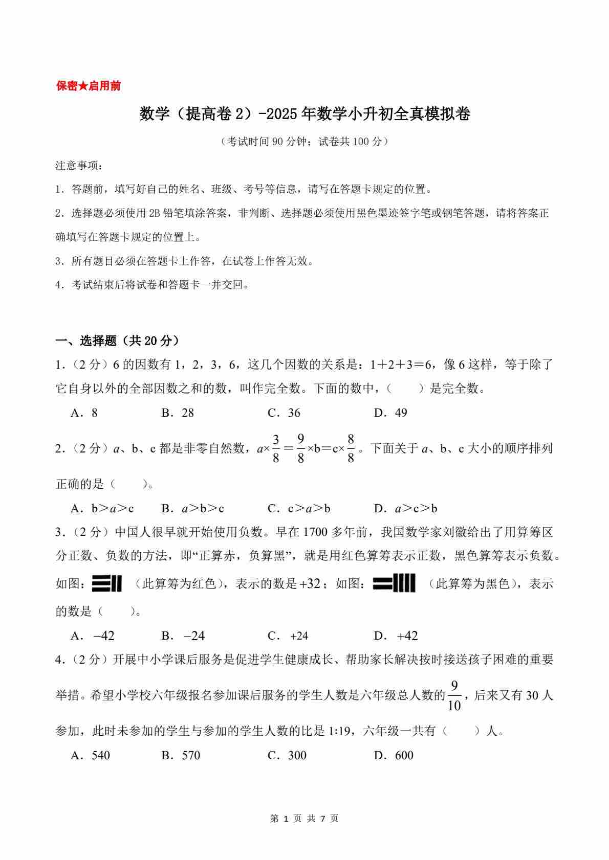【北京版】数学(提高卷01)(考试卷A4)