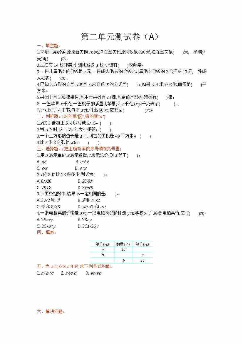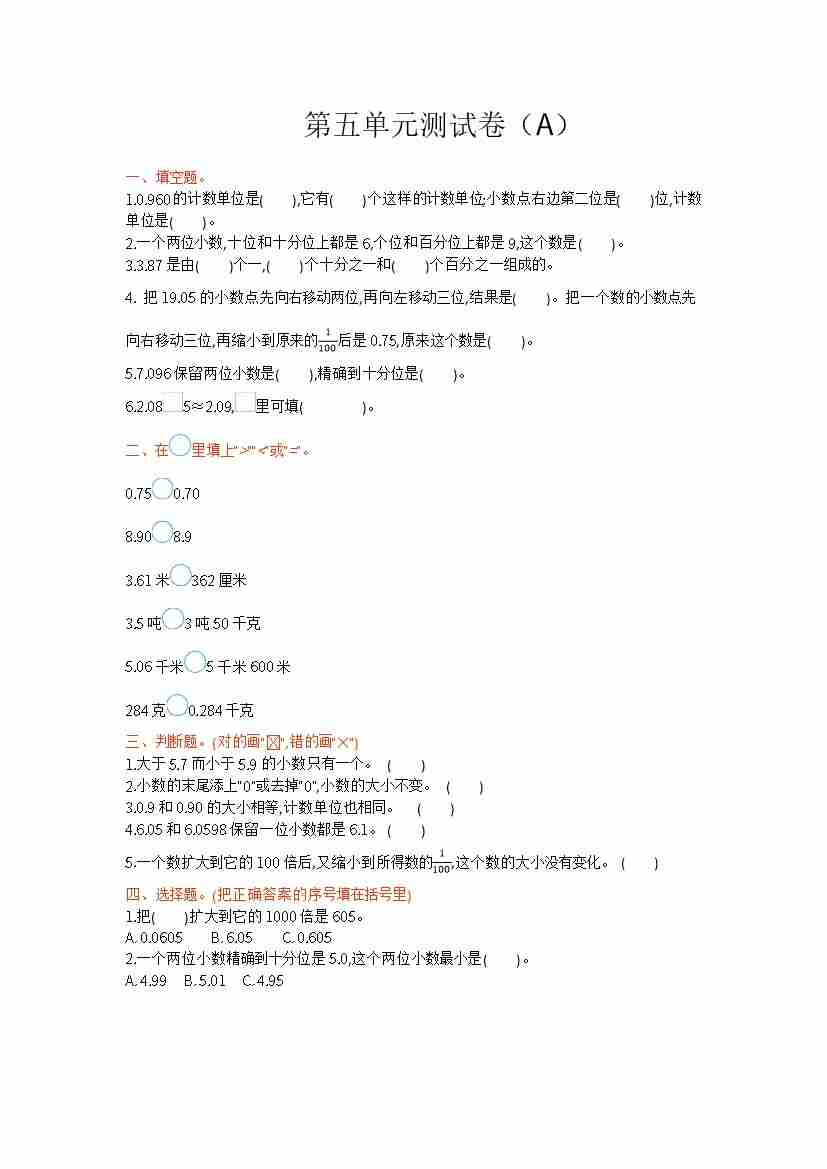 第五单元测试卷(A)