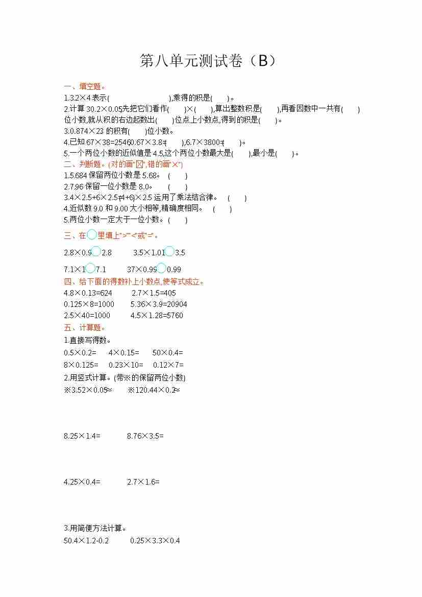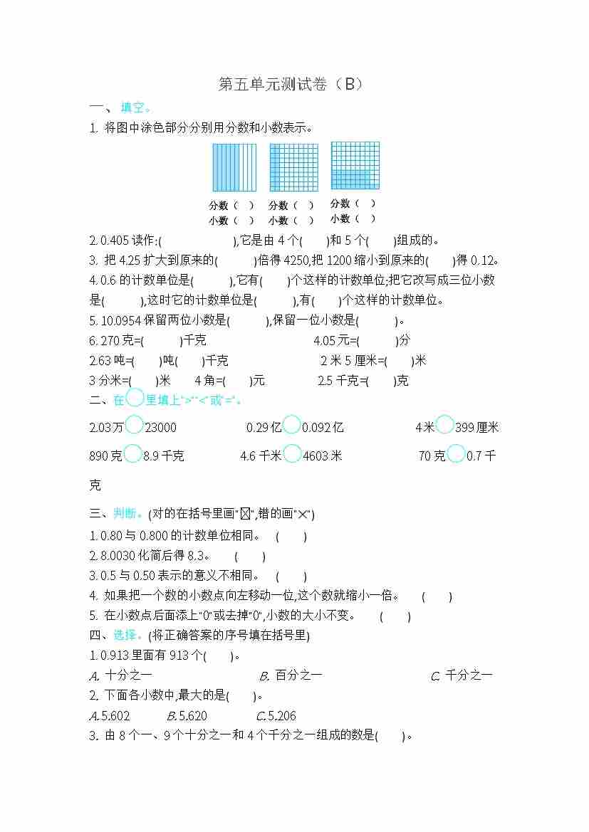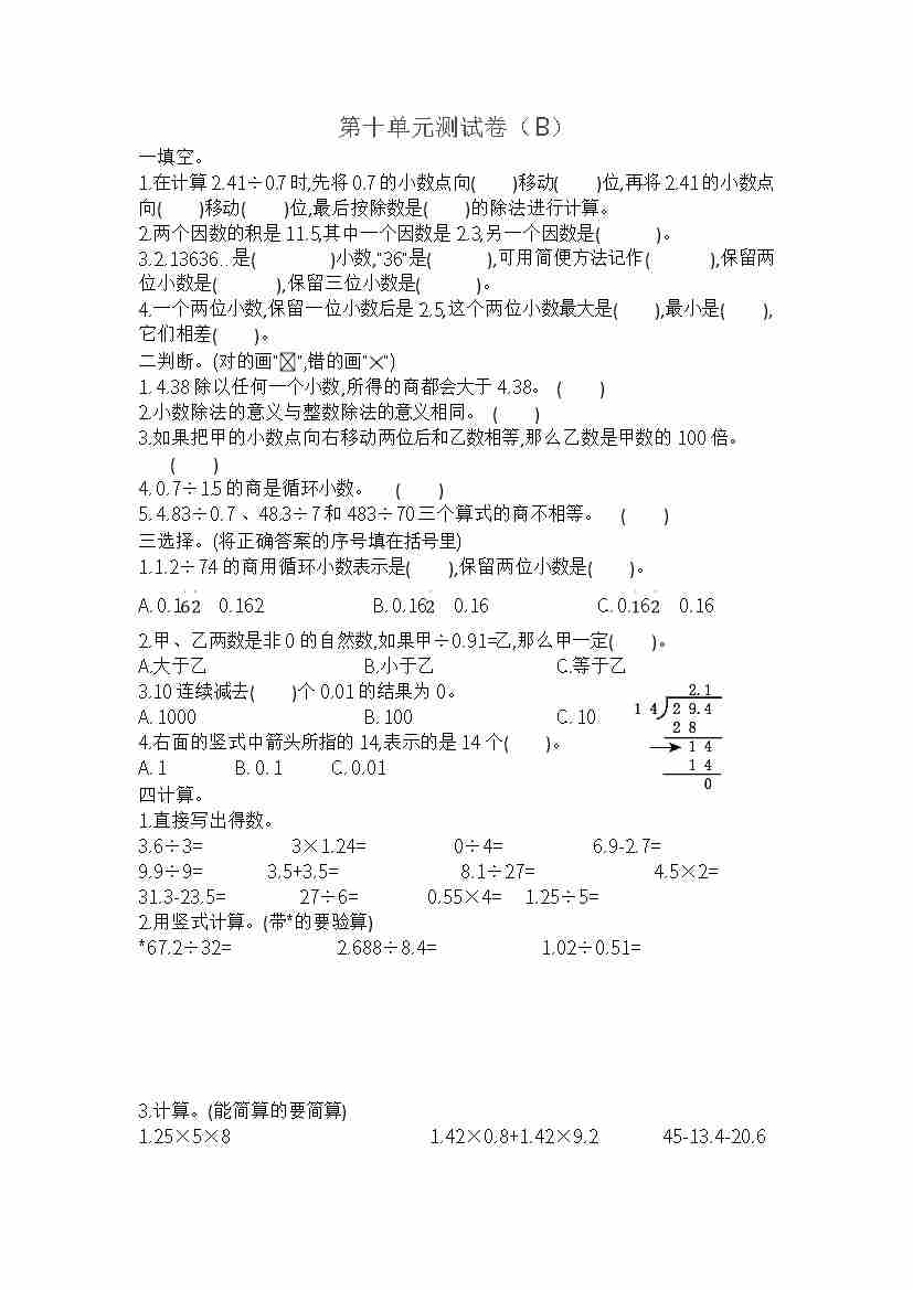 第五单元测试卷(B)