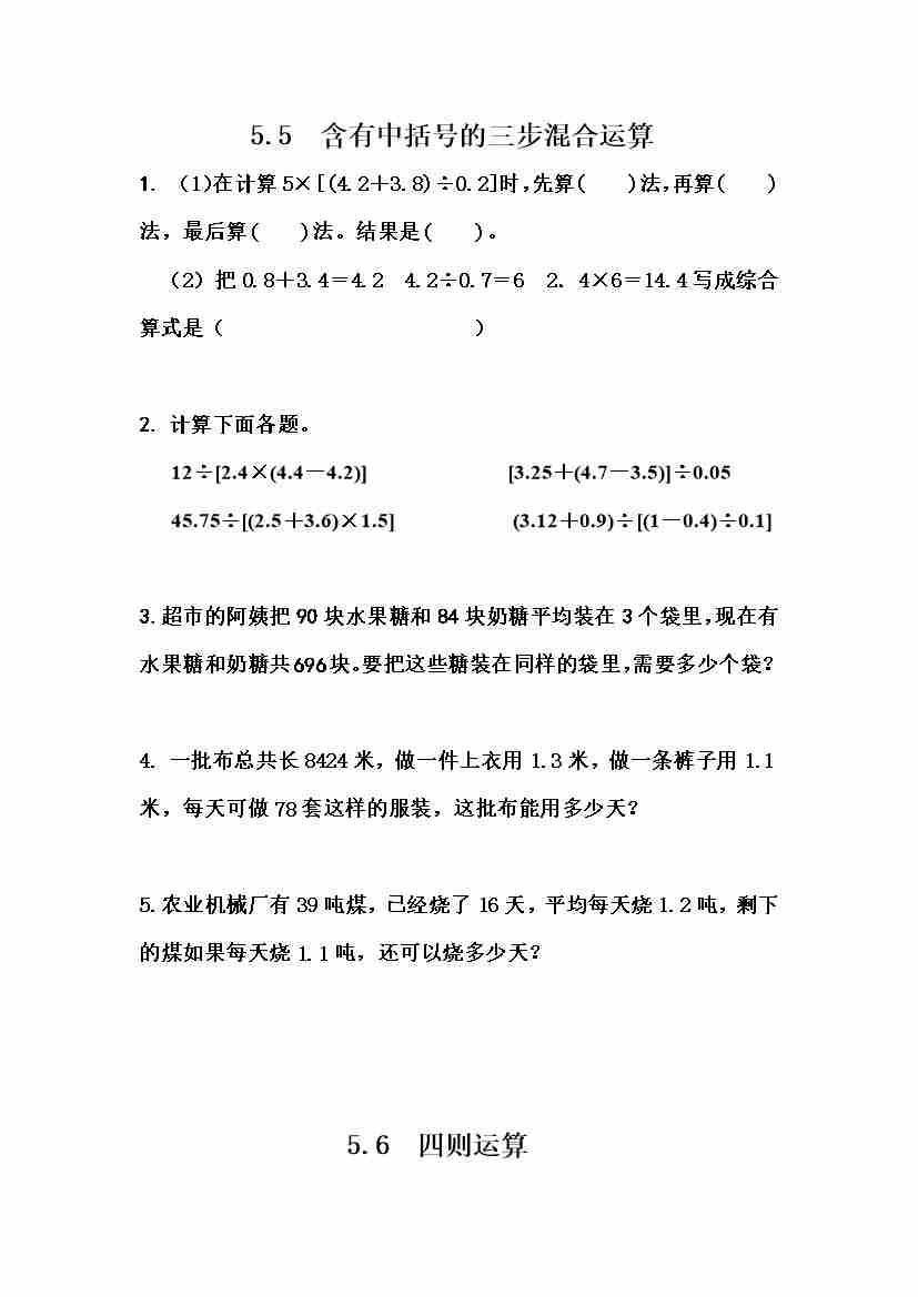 五(上)冀教版数学四单元课时.4