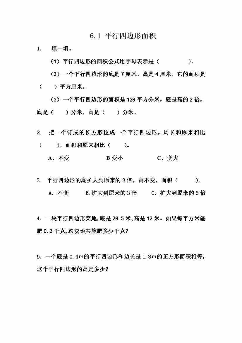 五(上)冀教版数学六单元课时.1