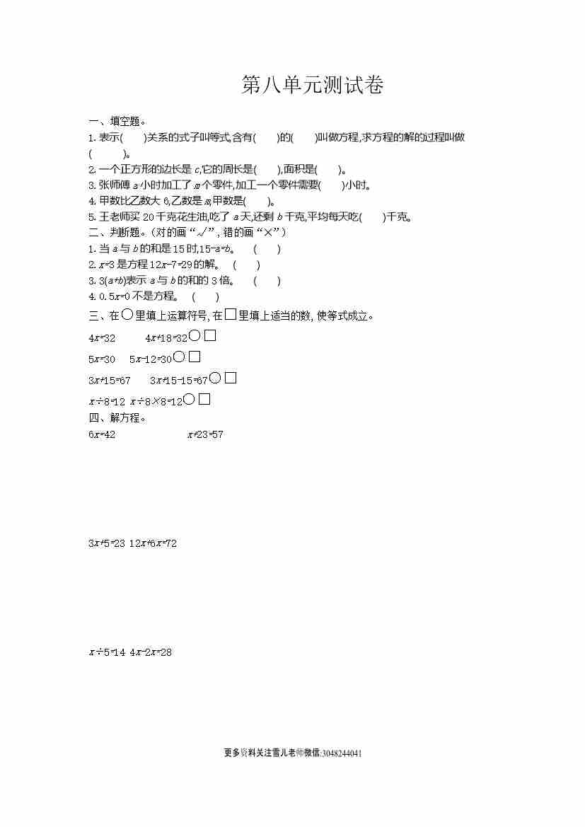 五年级(上)数学 第四单元模拟测试卷《冀教版》