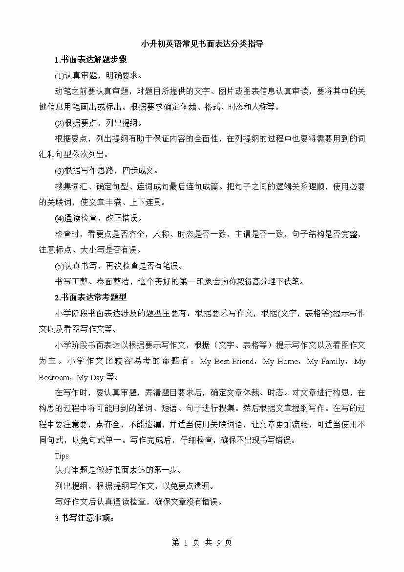 小升初英语常见书面表达分类指导