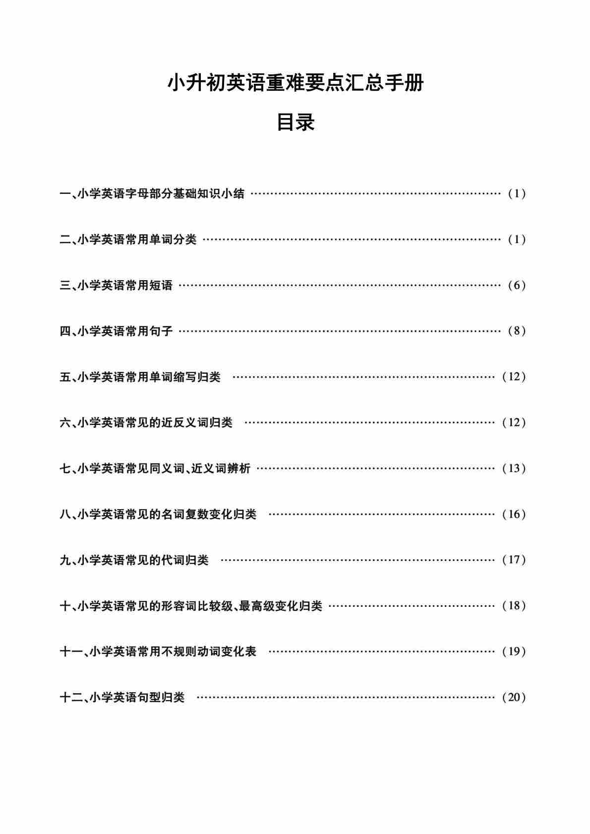 小升初英语重难要点汇总手册