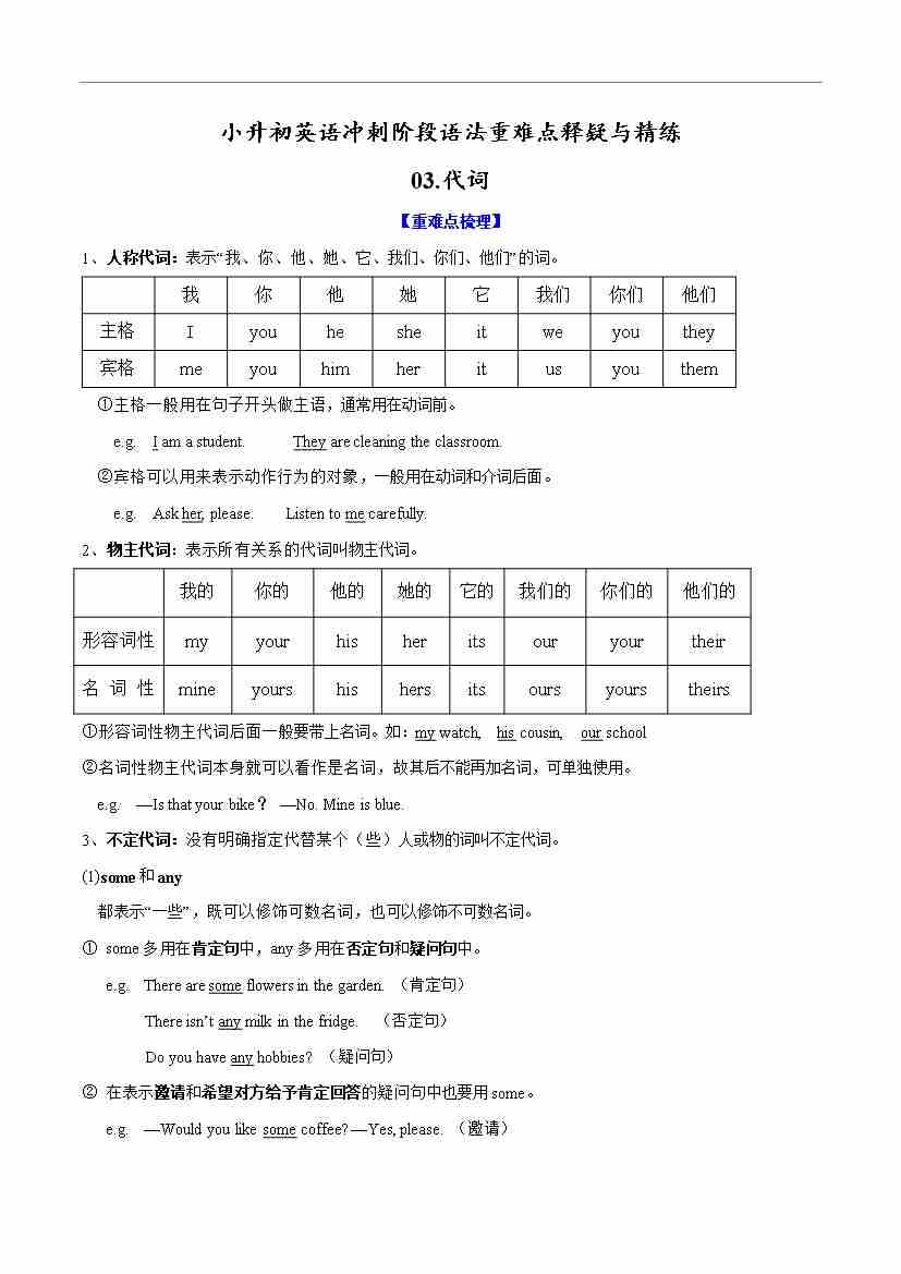 释疑与精练03 代词(解析版)-小升初英语冲刺阶段语法重难点释疑与精练(全国通用)