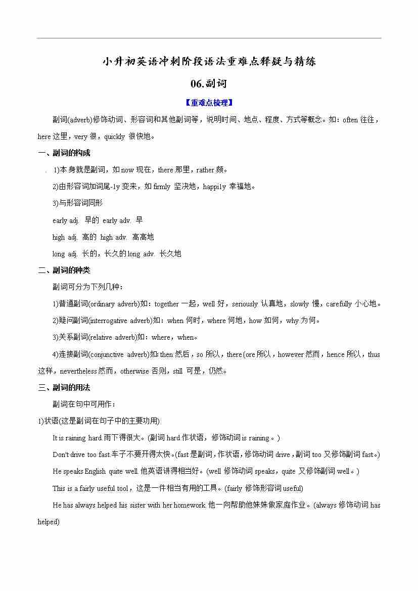 释疑与精练06 副词(解析版)-小升初英语冲刺阶段语法重难点释疑与精练(全国通用)