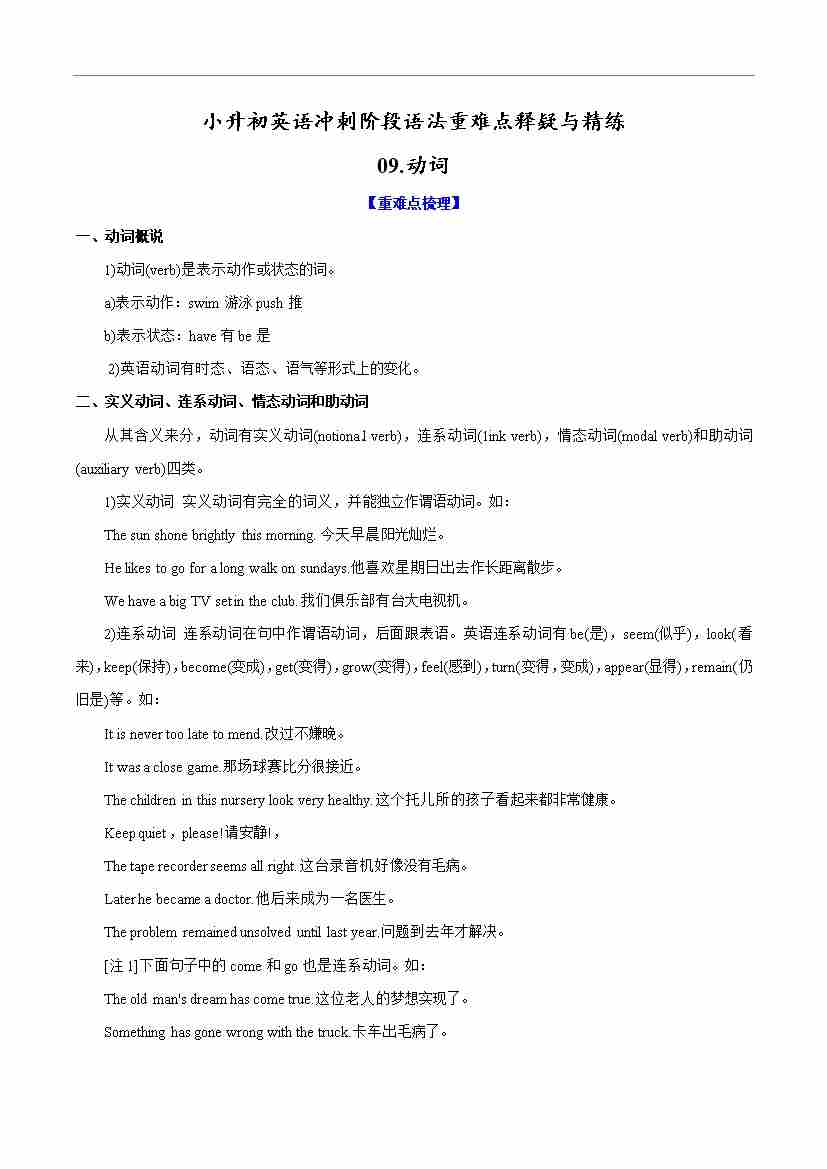 释疑与精练09 动词(原卷版)-小升初英语冲刺阶段语法重难点释疑与精练(全国通用)