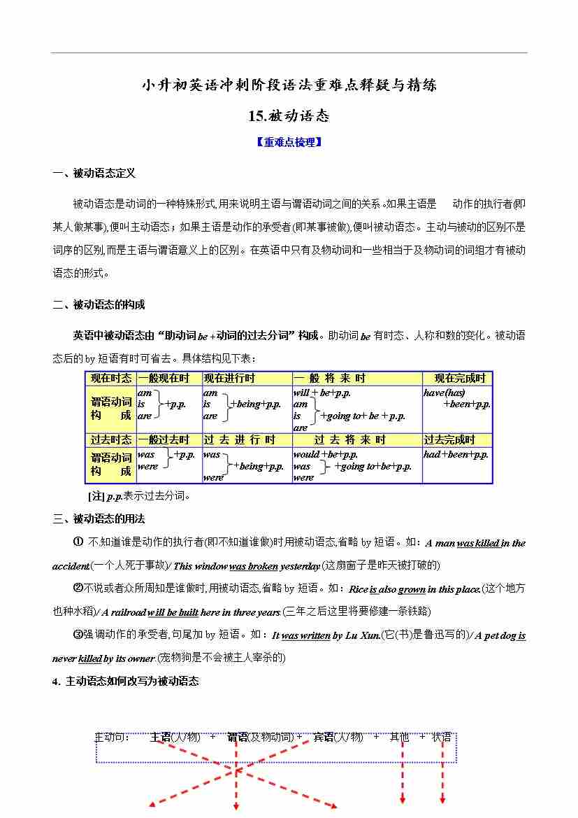 释疑与精练15 被动语态(原卷版)-小升初英语冲刺阶段语法重难点释疑与精练(全国通用)