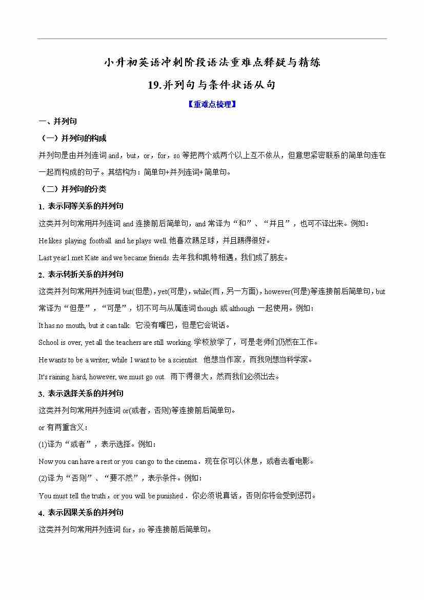 释疑与精练19 并列句与条件状语从句(解析版)-小升初英语冲刺阶段语法重难点释疑与精练(全国通用)