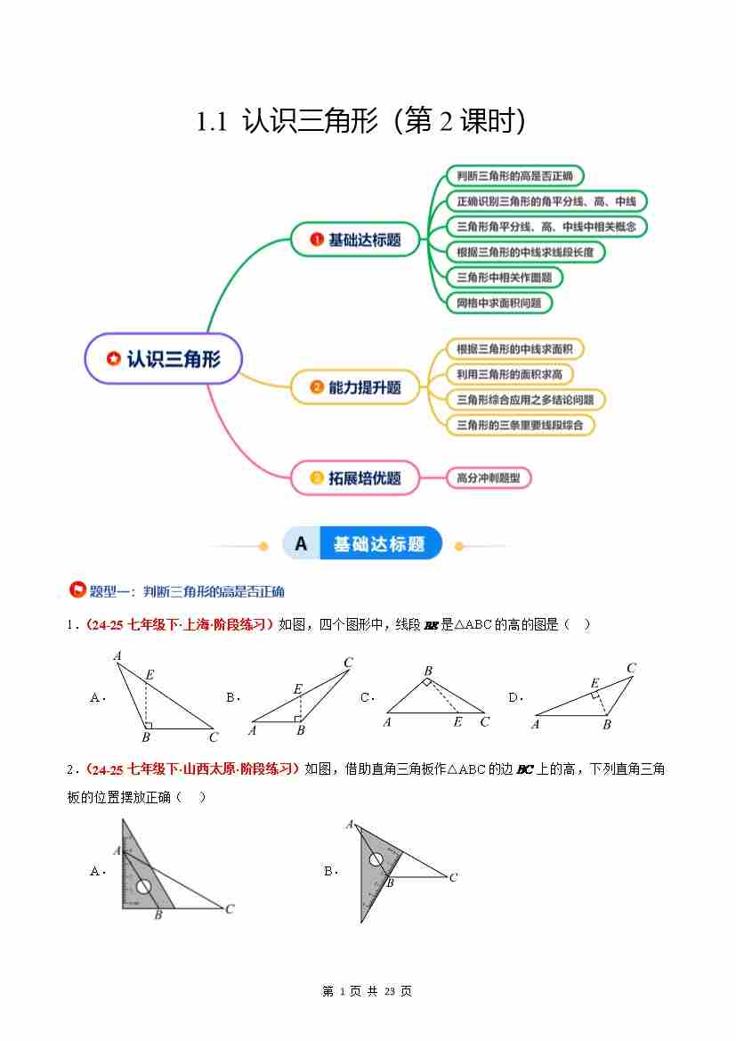 1.1 认识三角形(第2课时)(题型专练)(原卷版)