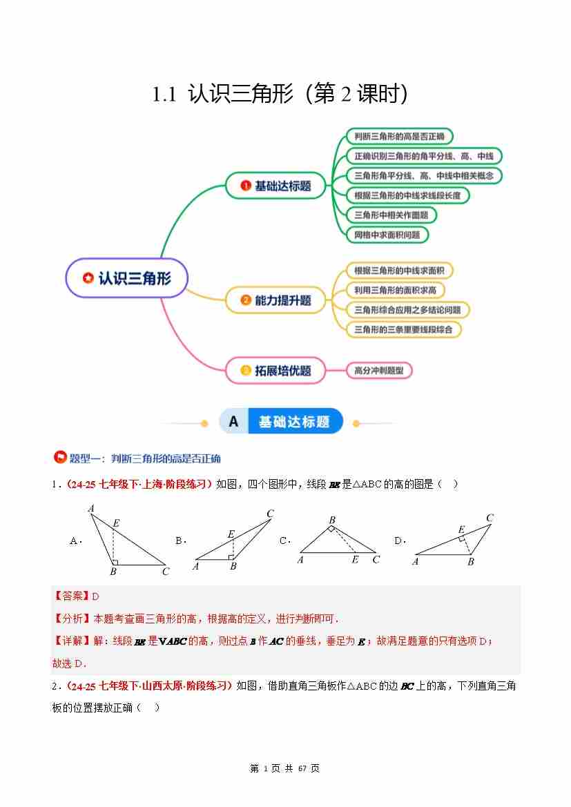 1.1 认识三角形(第2课时)(题型专练)(解析版)