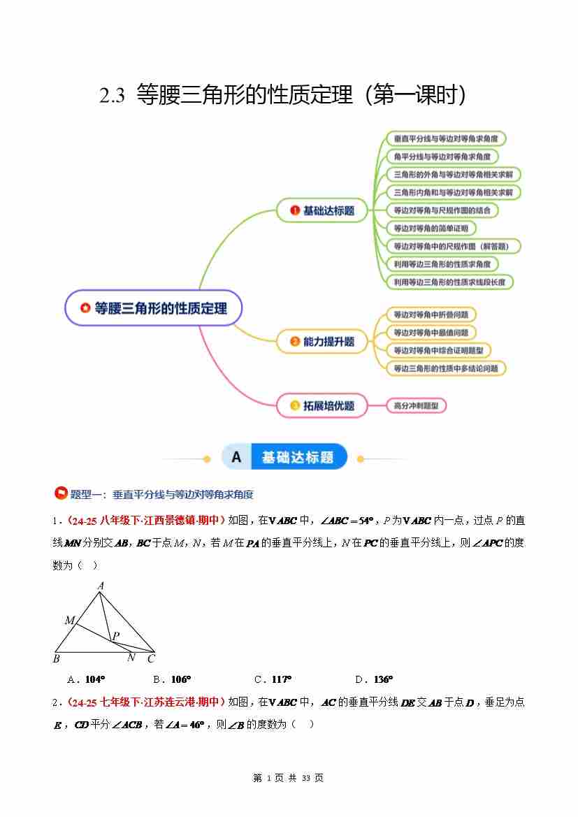 2.3 等腰三角形的性质定理(第1课时)(题型专练)(原卷版)