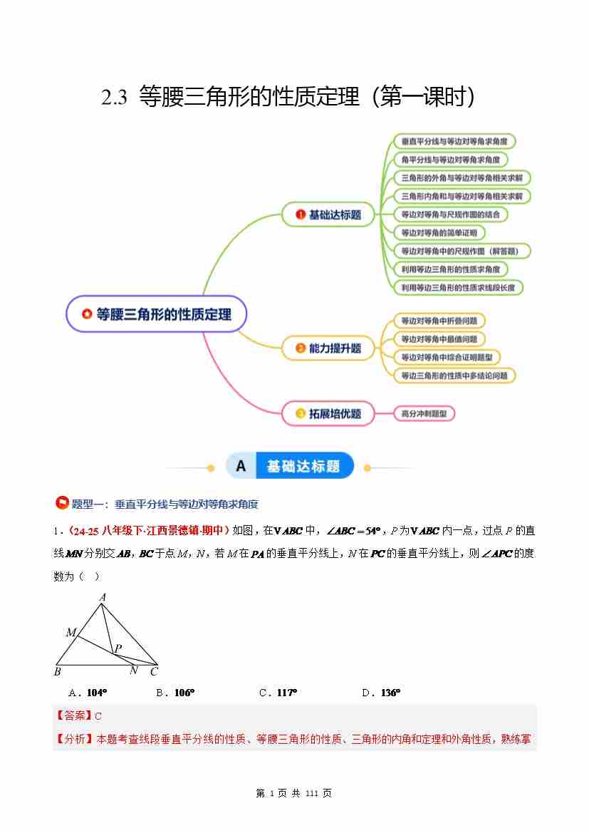 2.3 等腰三角形的性质定理(第1课时)(题型专练)(解析版)