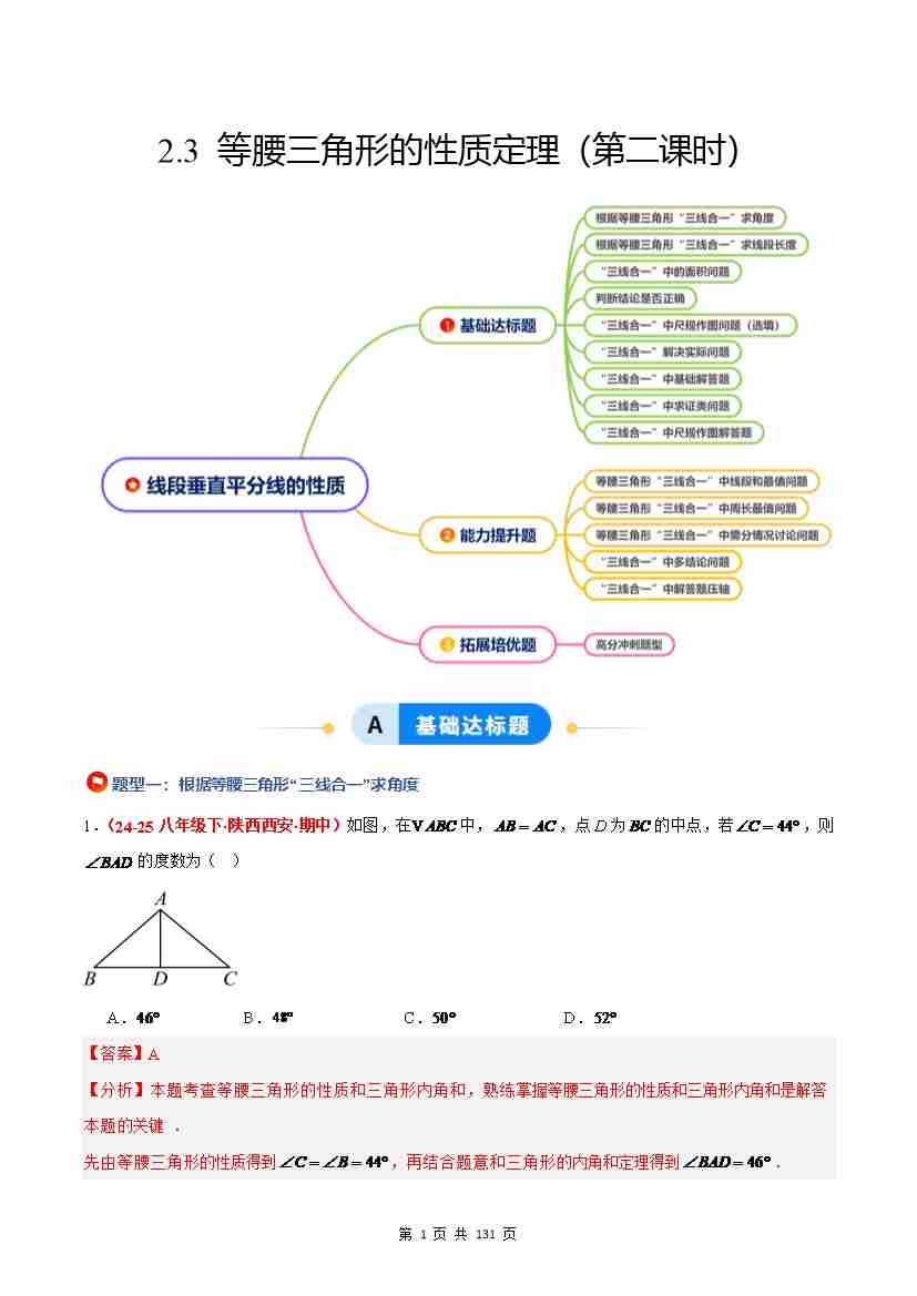 2.3 等腰三角形的性质定理(第2课时)(题型专练)(解析版)