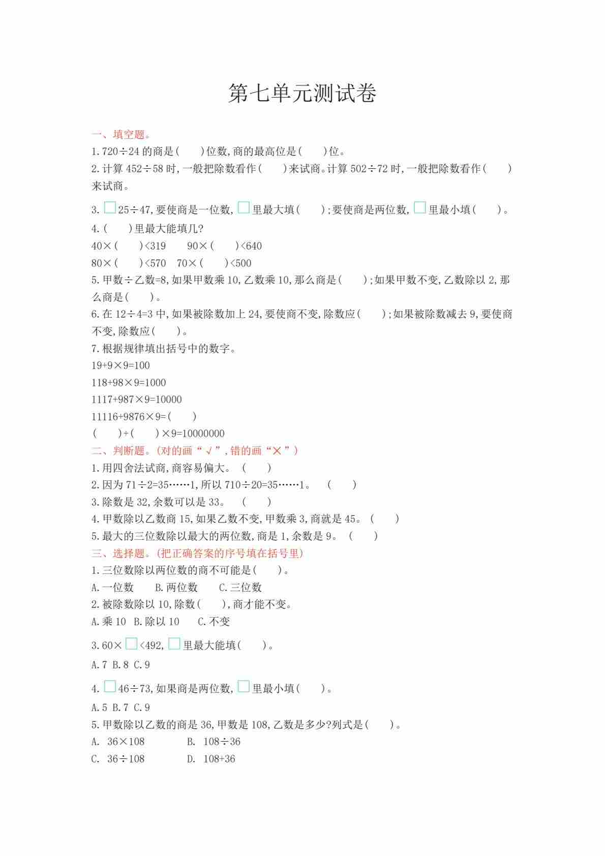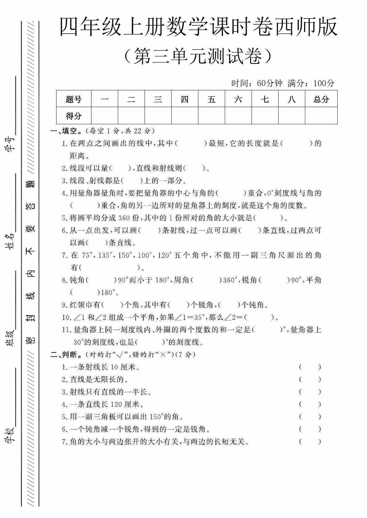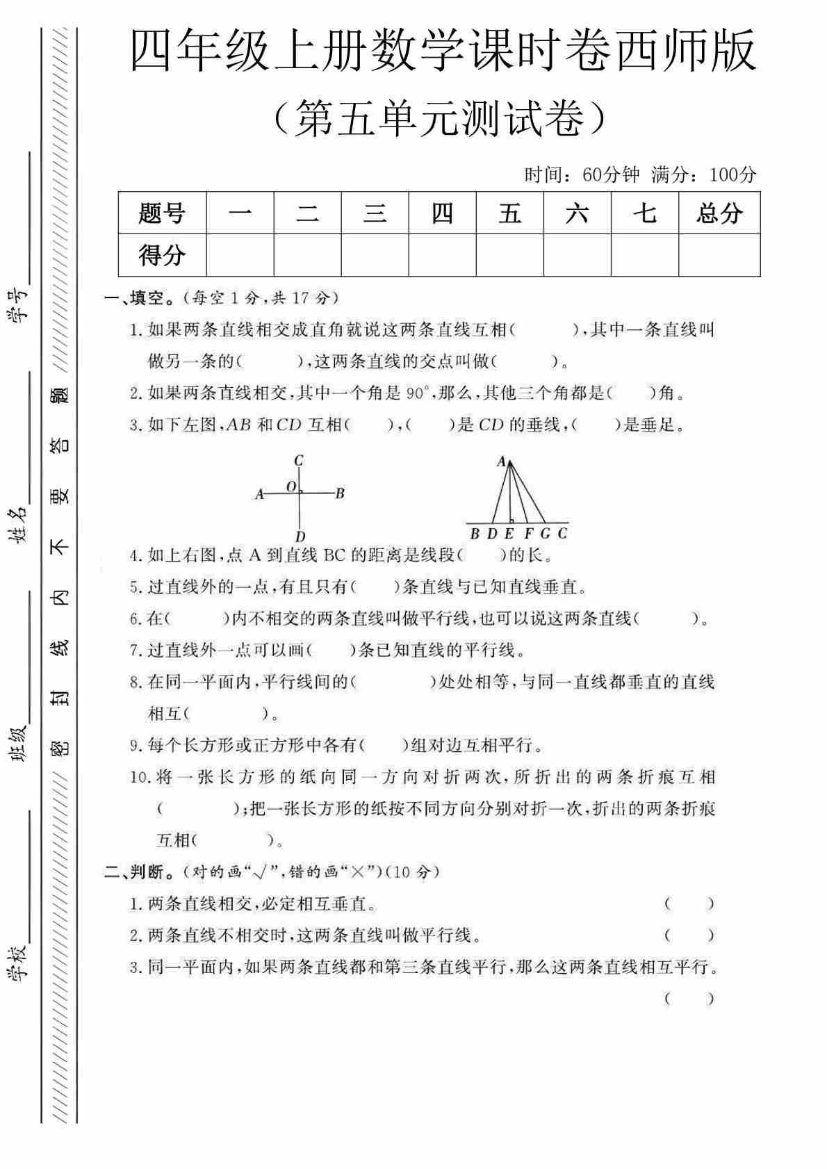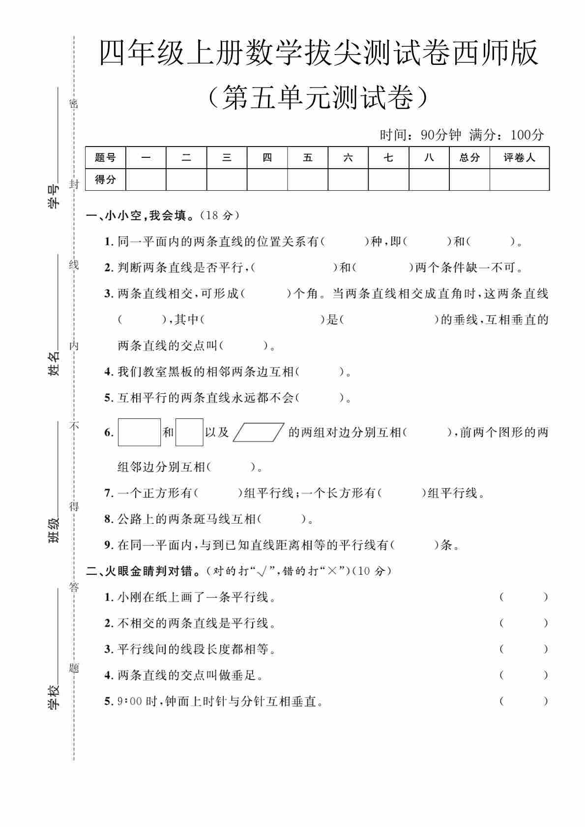 四年级(上)数学第五单元拔尖测试卷《西师版》