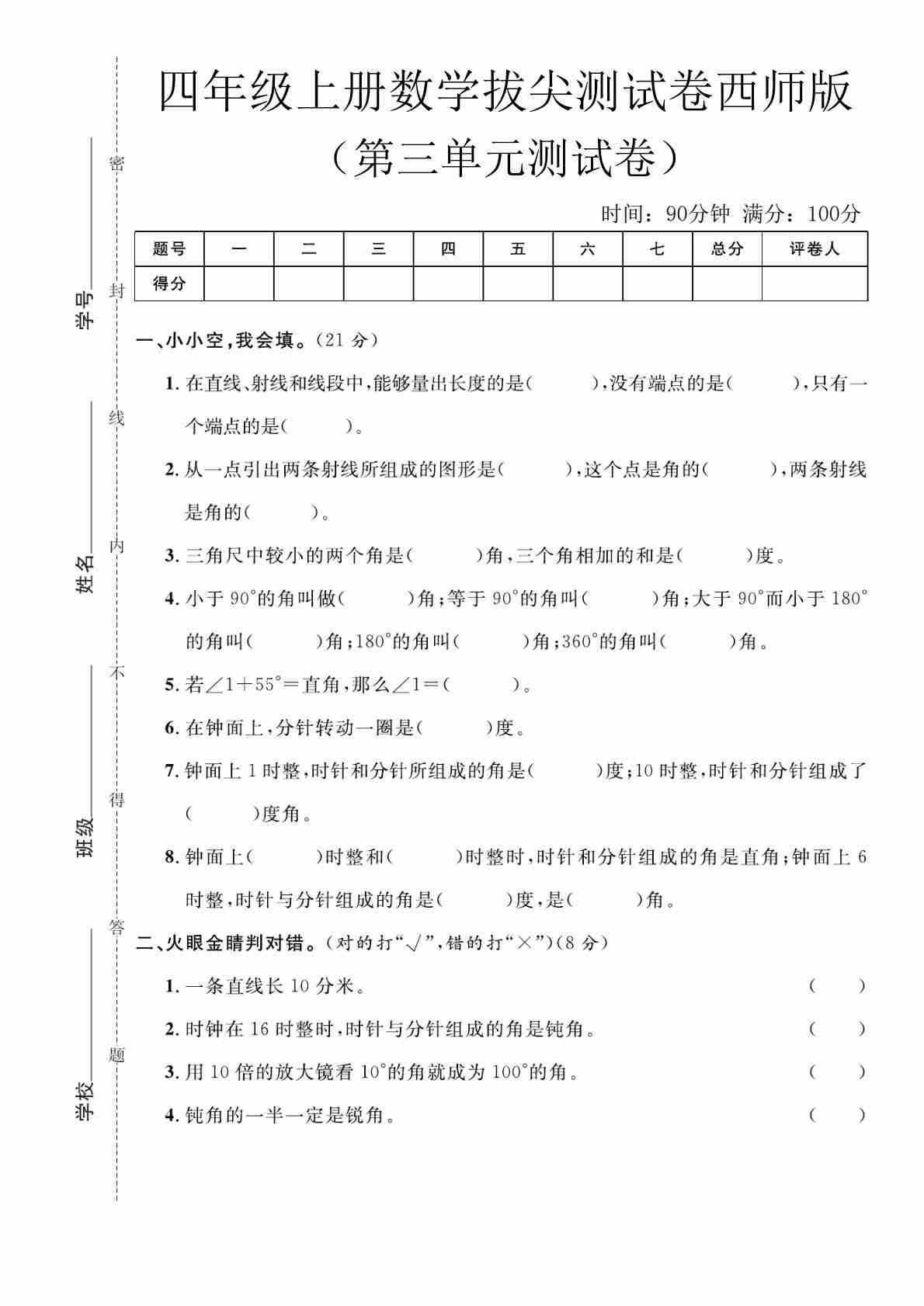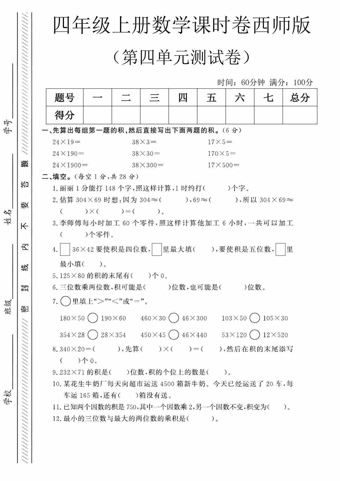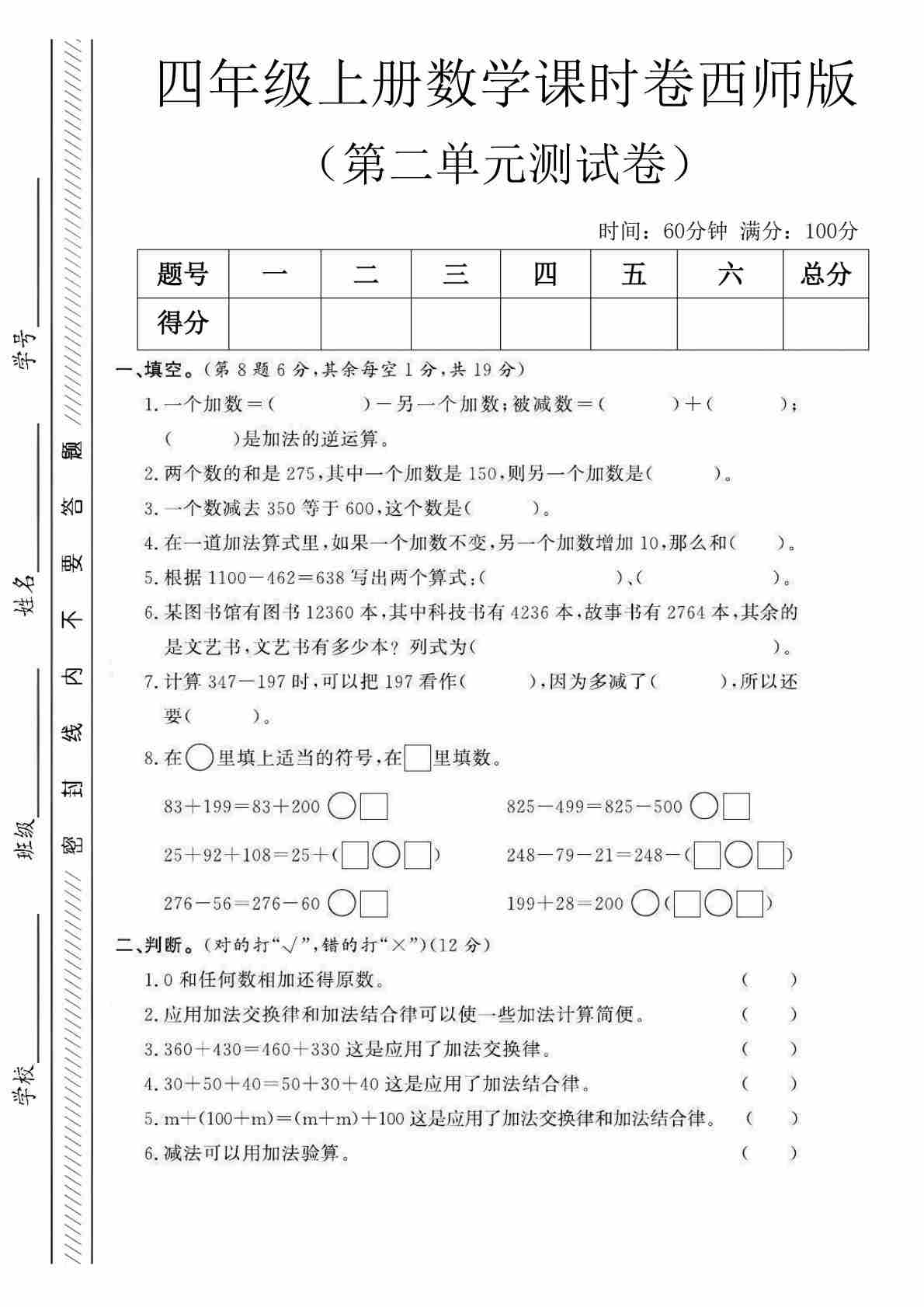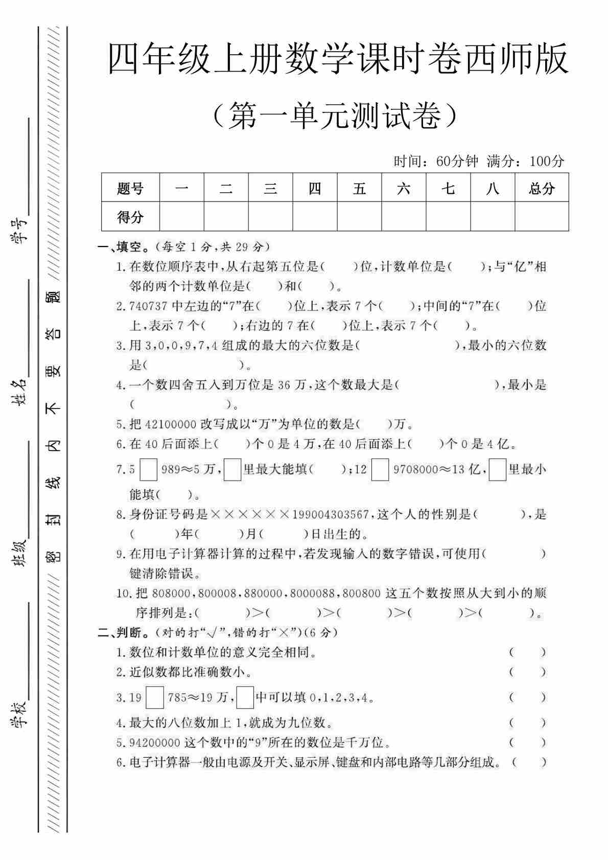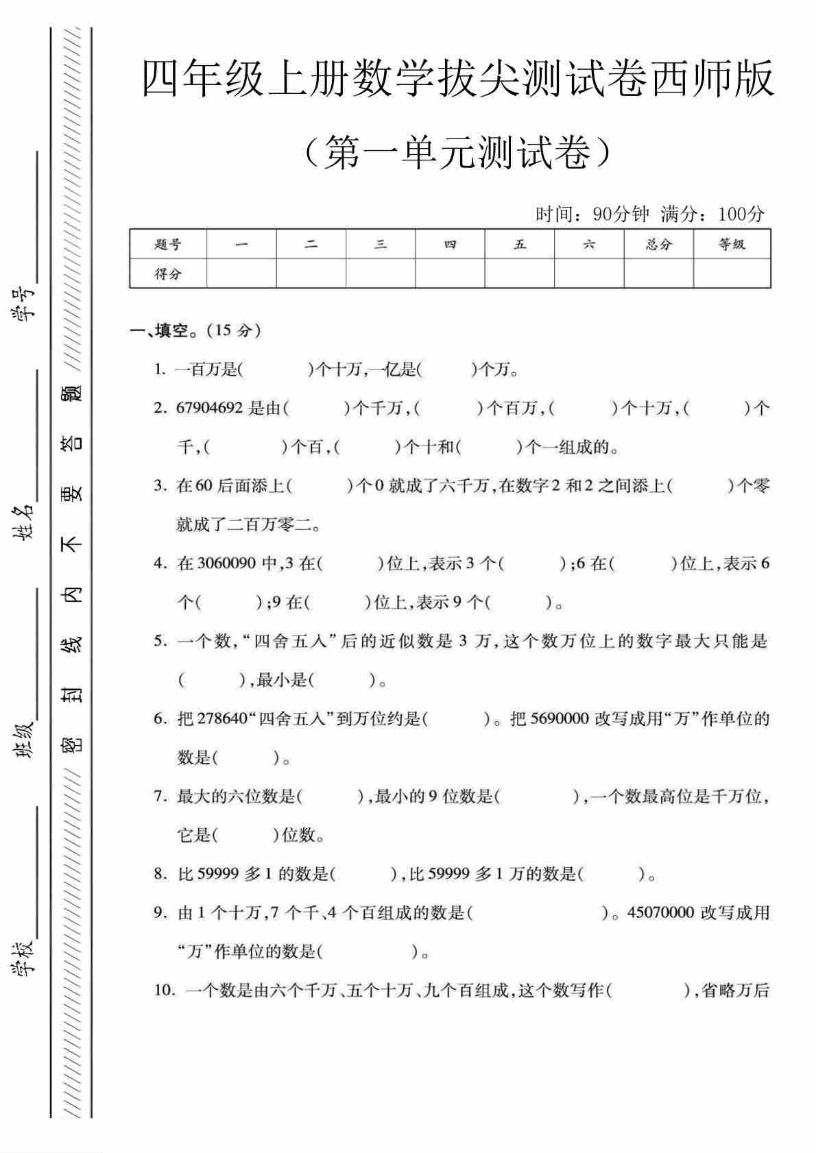 四年级(上)数学 第一单元拔尖测试卷《西师版》