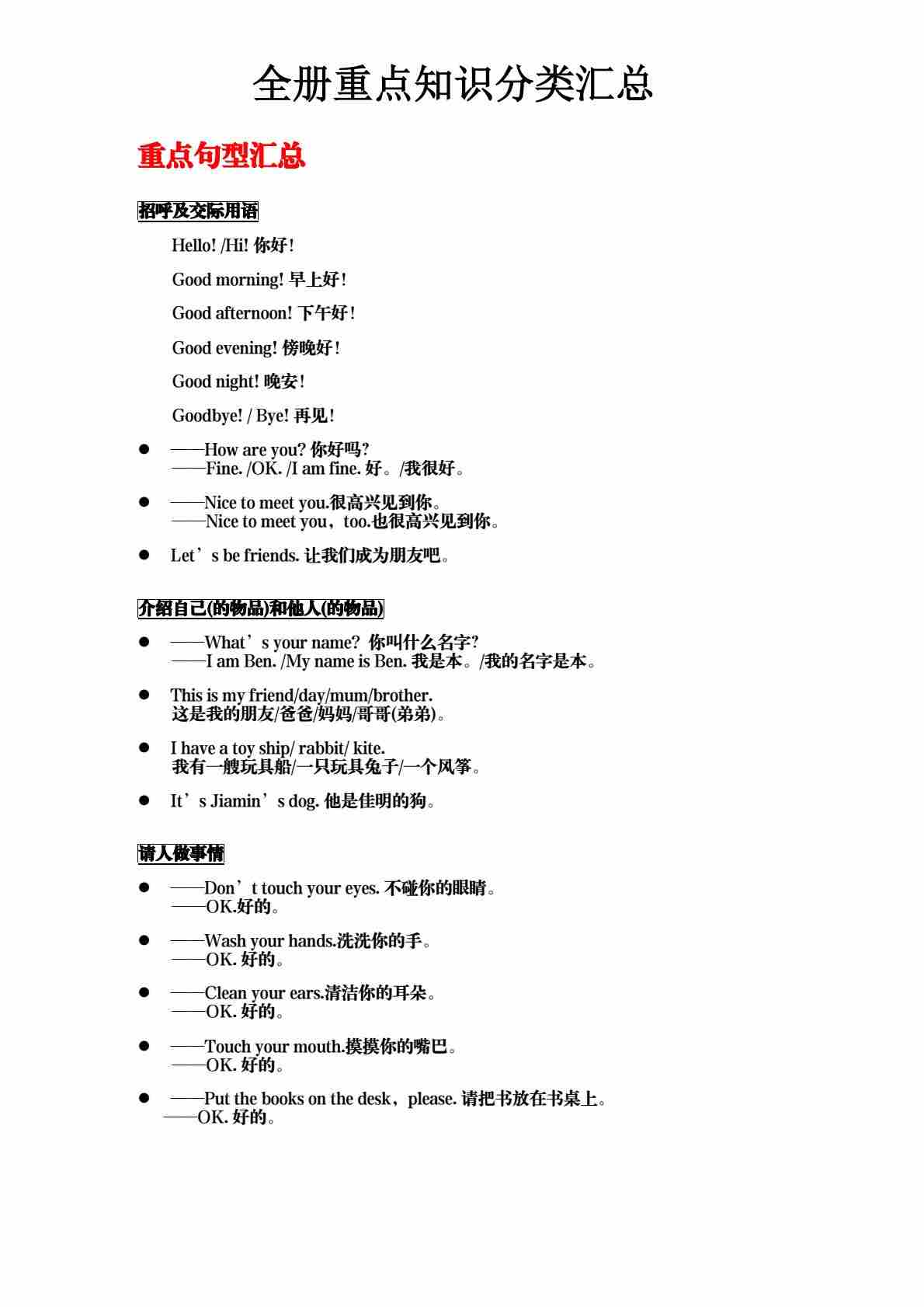 三年级(上)英语 全册重点知识分类汇总