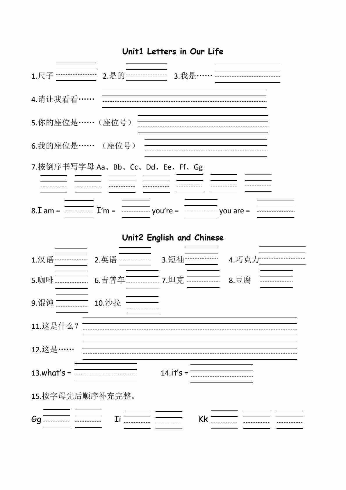 三年级(上)英语 Unit 2 EnglishandChinese知识梳理+专项练习