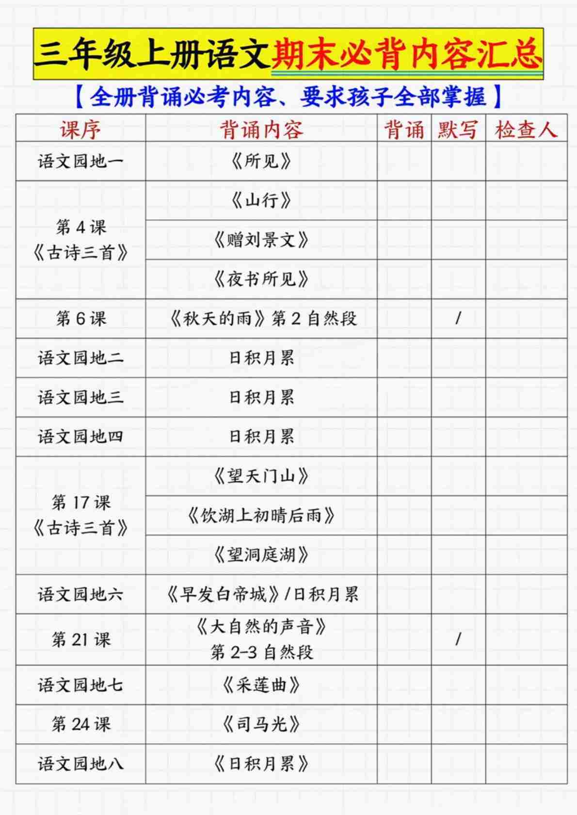 三上语文【期末必背内容汇总】